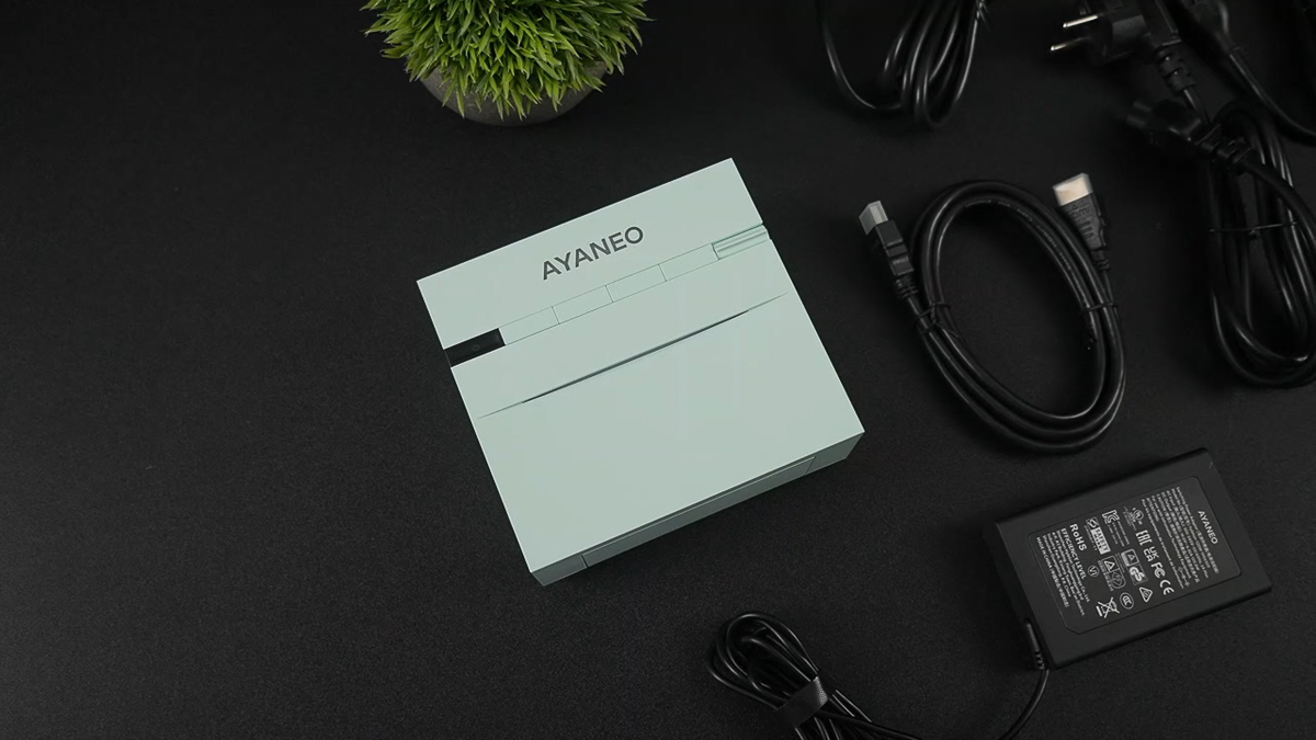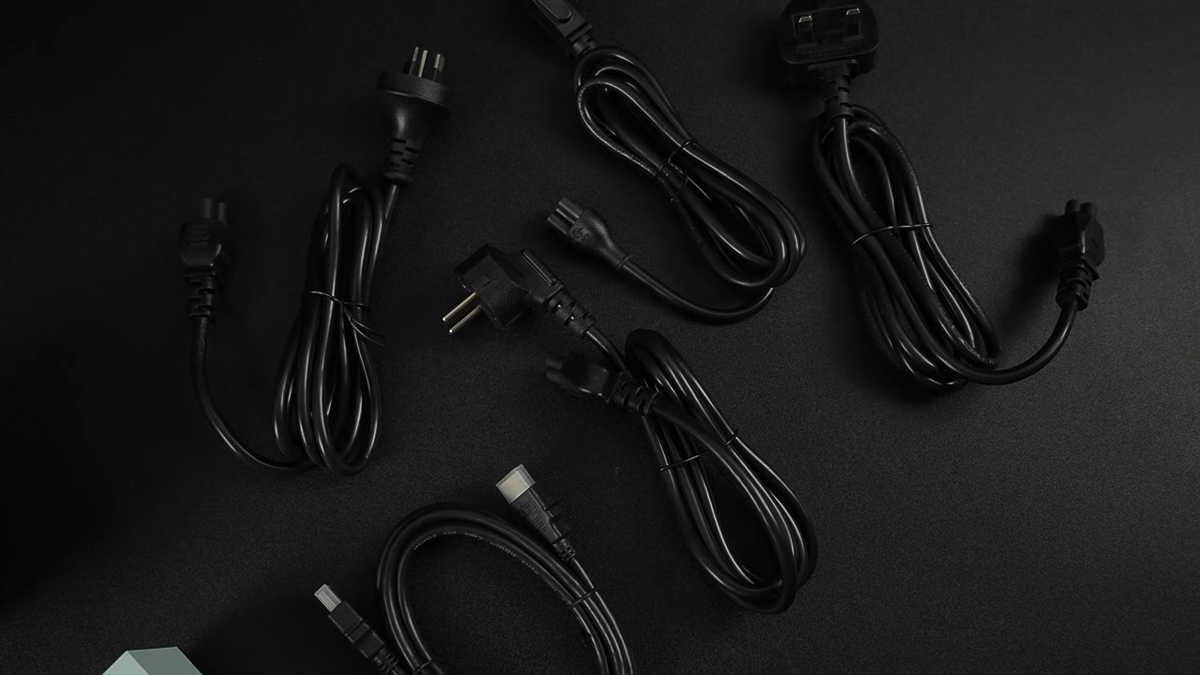 Phụ kiện đi kèm với mini pc AYANEO AM03 khá đơn giản, ngoài hộp pc chính ra thì chỉ có thêm 1x bộ adapter nguồn với 4 loại chấu cắm ổ điện khác nhau. Thêm 1x dây HDMI 2.1 nữa để xuất hình ra màn hình ngoài là hết.