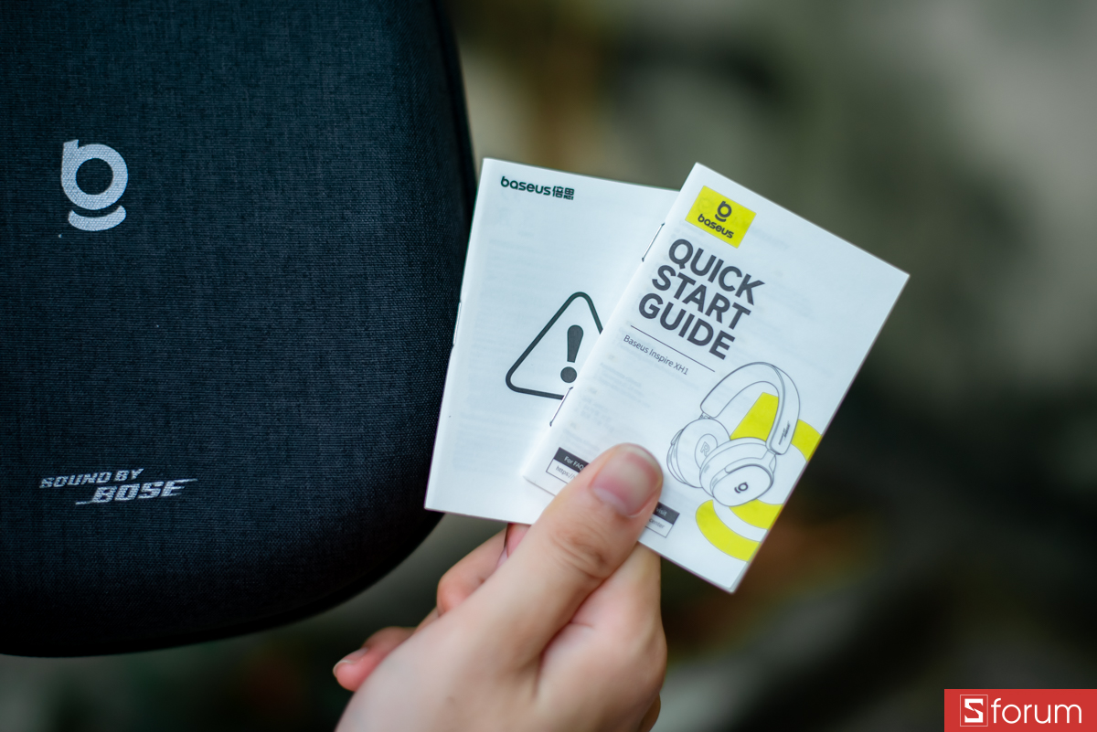 Cảm giác đầu tiên khi mình trên tay Baseus Inspire XH1 là phần đóng gói khá chỉn chu. Hộp sản phẩm dày dặn với hình ảnh tai nghe nổi bật ở mặt trước cùng logo "Sound by Bose" được in nổi bật, khẳng định vị thế của sản phẩm.