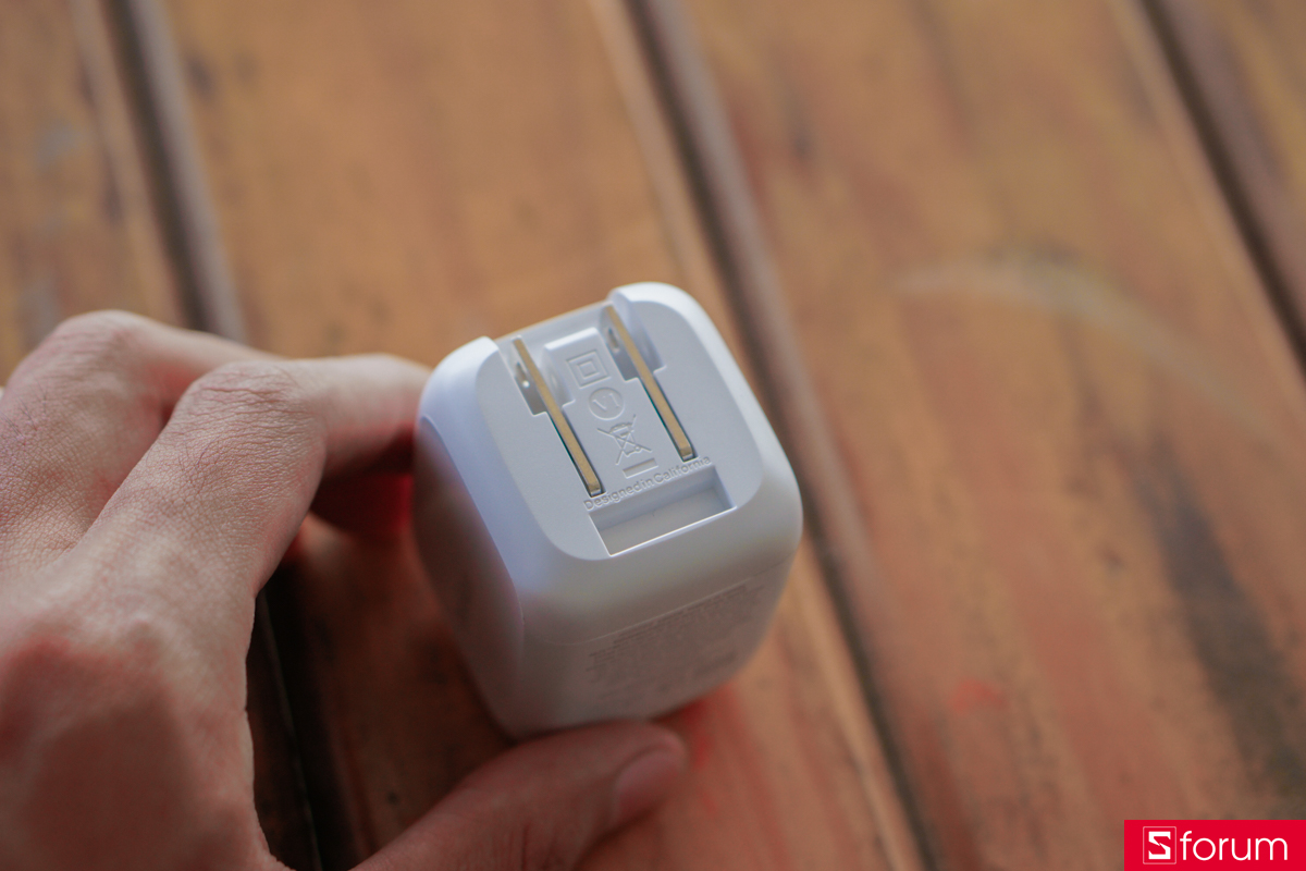 Phần chuôi cắm được thiết kế dạng gập mở, chắc chắn, đảm bảo độ ổn định khi cắm vào ổ điện. Trọng lượng củ sạc tương đối nhẹ chỉ 104g, phù hợp cho nhu cầu sử dụng hằng ngày hoặc mang theo khi đi công tác, du lịch.