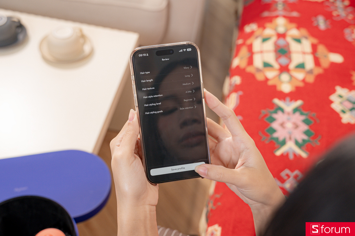 Một điểm nhấn công nghệ khác là kết nối Bluetooth với ứng dụng MyDyson. Thông qua app, người dùng có thể tạo hồ sơ chăm sóc tóc cá nhân, điều chỉnh nhiệt độ, tốc độ gió và thời gian tạo kiểu dựa trên thói quen và tình trạng tóc, đúng chất “máy tạo kiểu thông minh”.