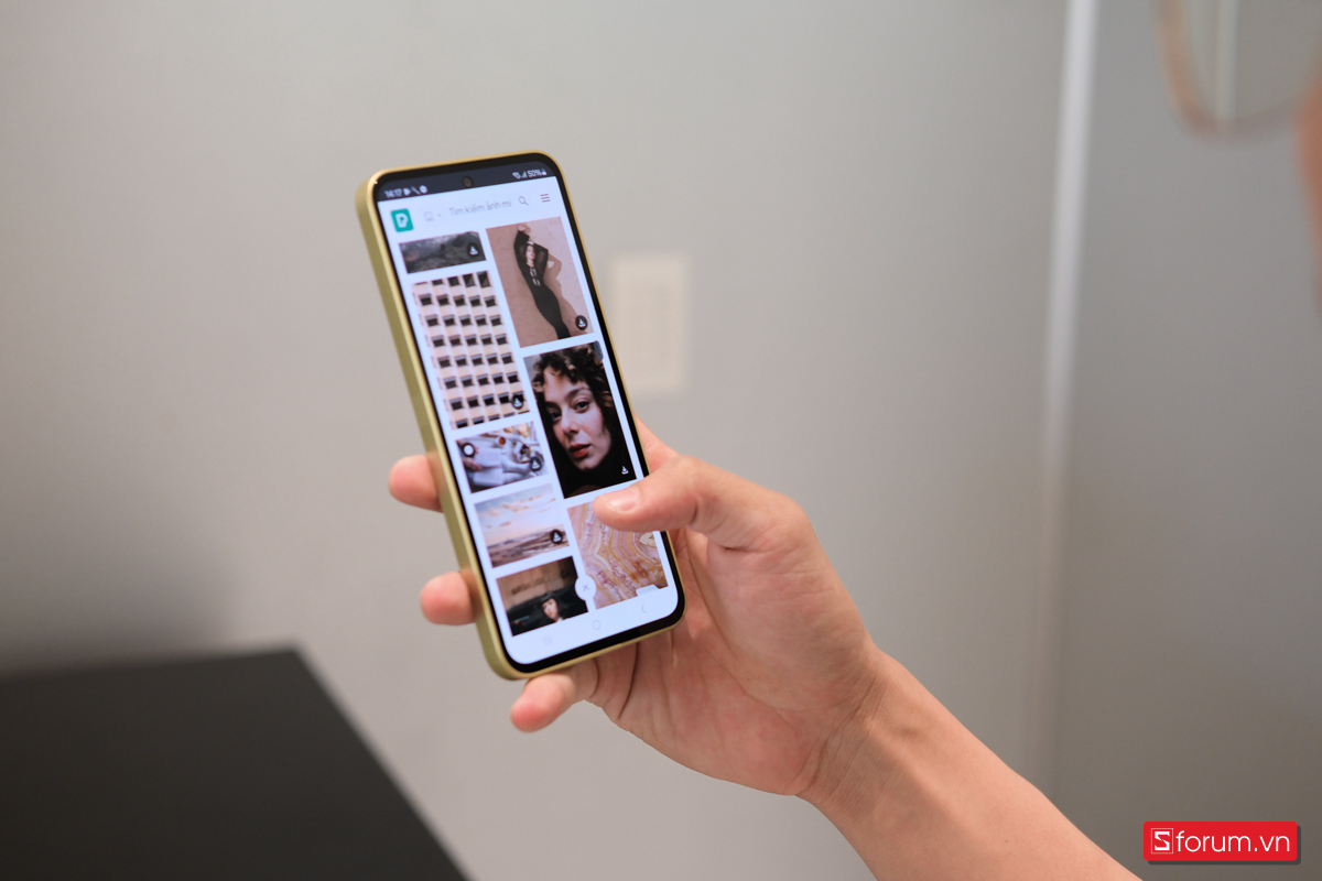 Một yếu tố khác làm cho màn hình trở nên ấn tượng là tỷ lệ màn hình trên thân máy đạt 84.8%. Con số này cho thấy Samsung đã tối ưu hóa tốt không gian máy bằng việc làm mỏng phần viền hiệu quả, giúp tăng cường khả năng hiển thị, tạo cảm giác không viền ấn tượng và điều này làm mình khá thích thú khi giải trí xem phim, chơi game trên điện thoại.
