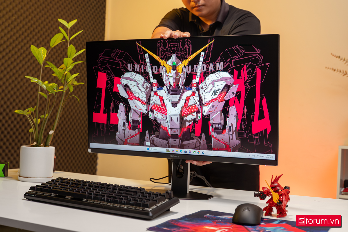 Nhìn chung Xiaomi G27i 2026 có thiết kế hiện đại, mang phong cách gaming nhưng vẫn phù hợp với nhiều không gian làm việc hay giải trí. Tuy nhiên, phần chân đế chưa thật sự chắc như kiểu chữ V. Về một điểm nhỏ khi lắp đặt nữa, nếu bạn không có tua vít sẵn, việc vặn ốc sẽ tốn thêm chút thời gian so với các mẫu gắn nhanh.