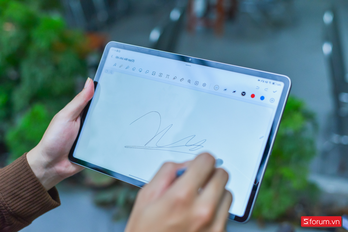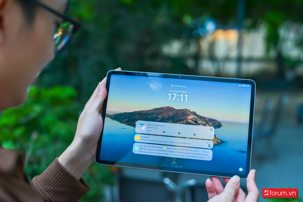 Màn hình có tần số quét 120Hz giúp các thao tác vuốt chạm trở nên mượt mà, đặc biệt khi sử dụng bút stylus để ghi chú hay vẽ, mình hoàn toàn không cảm thấy độ trễ khó chịu. Độ sáng tối đa 500 nits cùng khả năng tái tạo 100% gam màu DCI-P3 đảm bảo hình ảnh sống động ngay cả khi sử dụng ngoài trời.