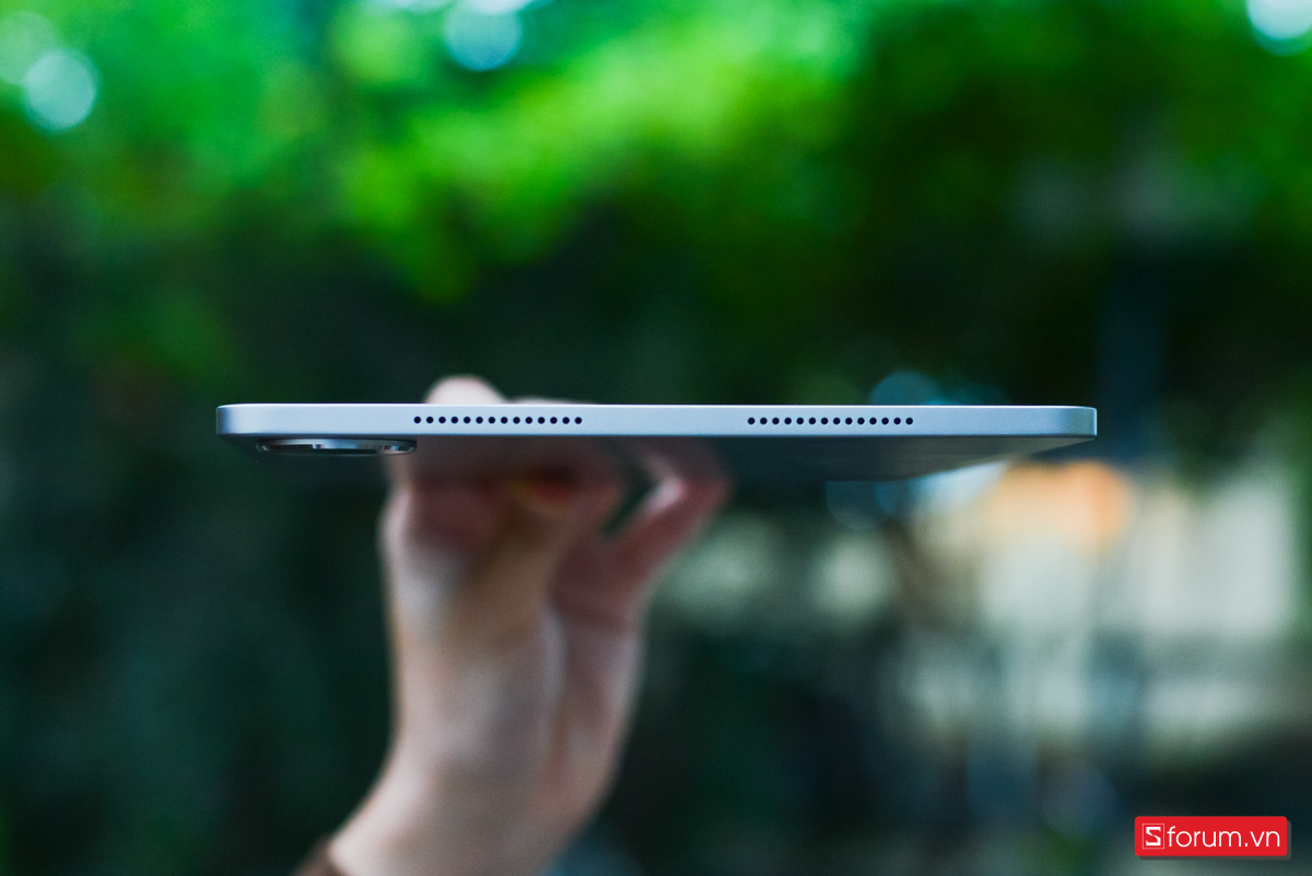 Các cổng kết nối và phím bấm được sắp xếp hợp lý xung quanh thân máy. Cổng sạc Type-C nằm ở cạnh dưới cùng hai dãy loa. Cạnh bên phải đặt nút nguồn và nút tăng/giảm âm lượng. Cuối cùng là hai dãy loa còn lại được đặt cạnh trên của máy.