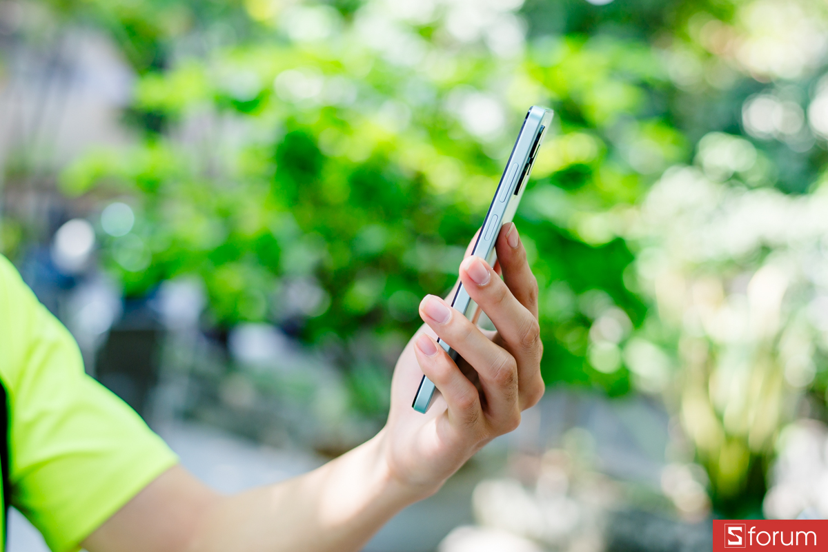 Cạnh phải của máy là nút nguồn kiêm cảm biến vân tay tích hợp và nút tăng giảm âm lượng, bố trí hợp lý để thao tác dễ dàng. Việc tích hợp cảm biến vân tay vào nút nguồn giúp mở khóa nhanh chóng và tiện lợi.