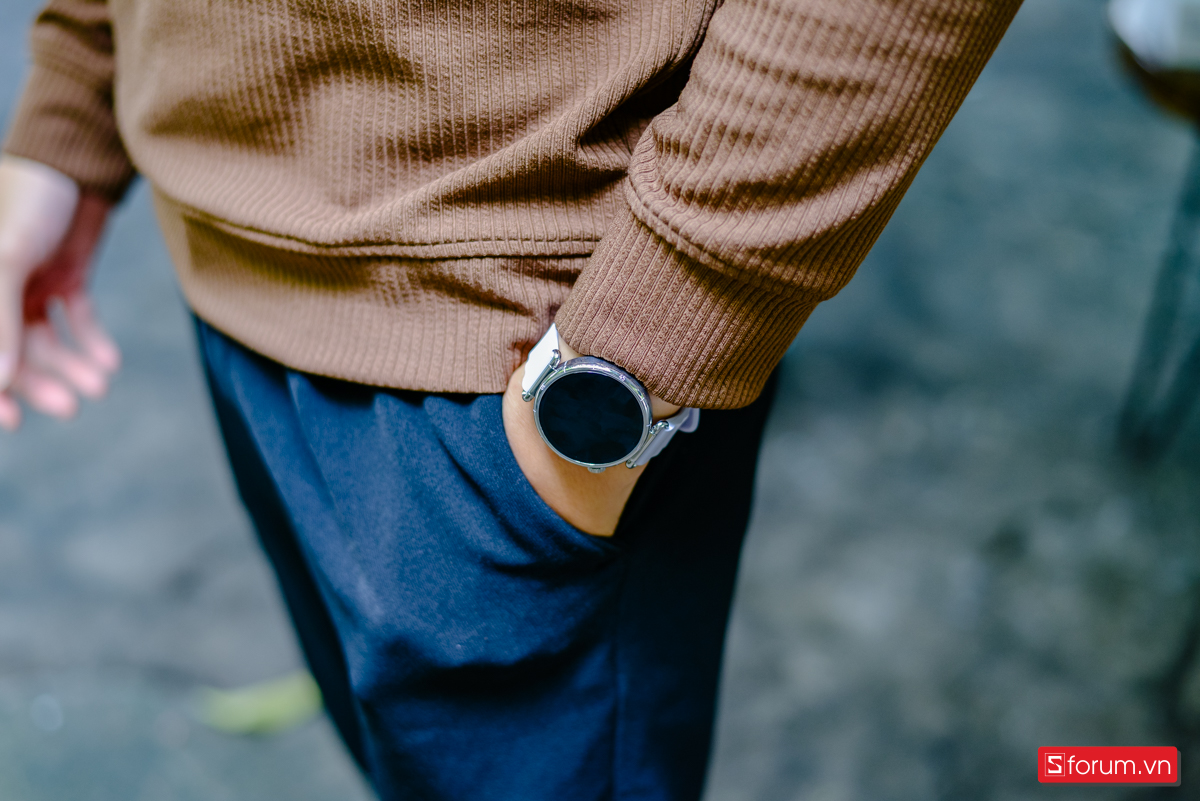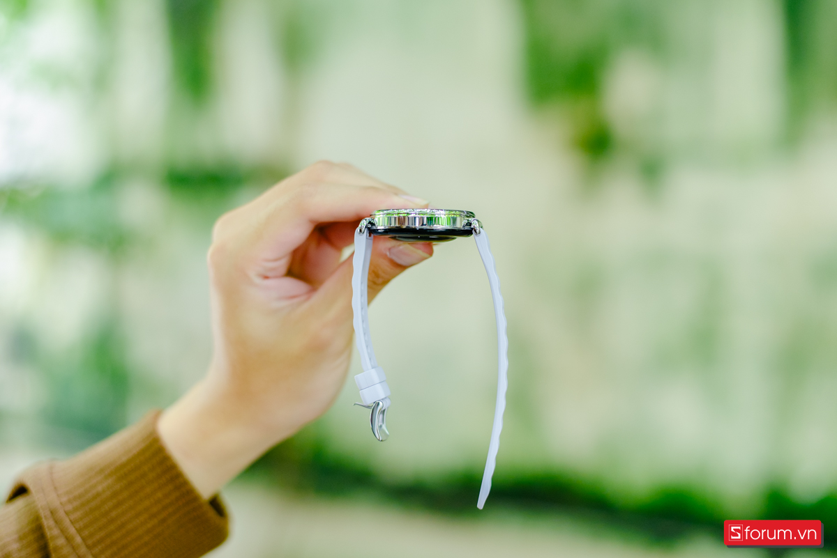 Kích thước 41.3 x 41.3 x 9.99mm và trọng lượng chỉ 37.5g (không dây đeo) khiến đồng hồ vừa vặn hoàn hảo trên cổ tay nhỏ mà không gây cảm giác cồng kềnh.