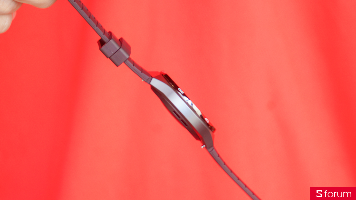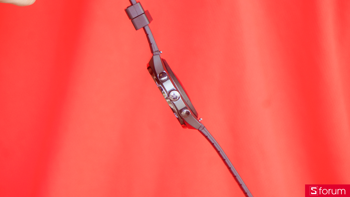 Núm xoay được đặt ở giữa cạnh phải, mang hơi hướng của những chiếc đồng hồ cơ truyền thống. Cảm giác xoay và bấm các phím trên Kieslect Elite 2 khá đã tay, phản hồi rõ ràng, chắc chắn, không hề ọp ẹp. Phản hồi rung hoạt động nhanh, gọn, không bị cục mịch, góp phần mang lại trải nghiệm sử dụng cao cấp hơn so với tầm giá.