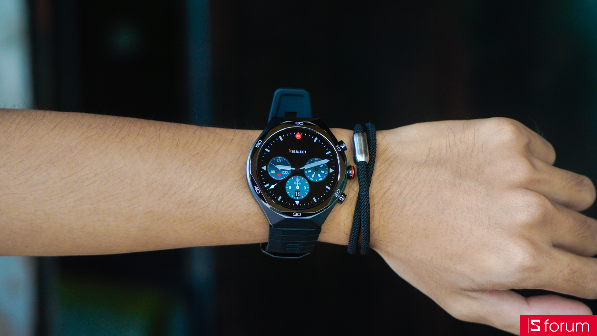 Dù sử dụng nhiều vật liệu khác nhau, Kieslect Elite 2 không hề mang lại cảm giác chắp vá hay rẻ tiền. Ngược lại, tổng thể thiết kế vẫn rất sang trọng, chắc chắn và có điểm nhấn rõ ràng. Đặc biệt, viền bezel được cắt lát các cạnh cực kỳ tinh xảo, tạo hiệu ứng ánh sáng tốt và khiến chiếc đồng hồ trông nổi bật hơn hẳn khi nhìn trực tiếp.