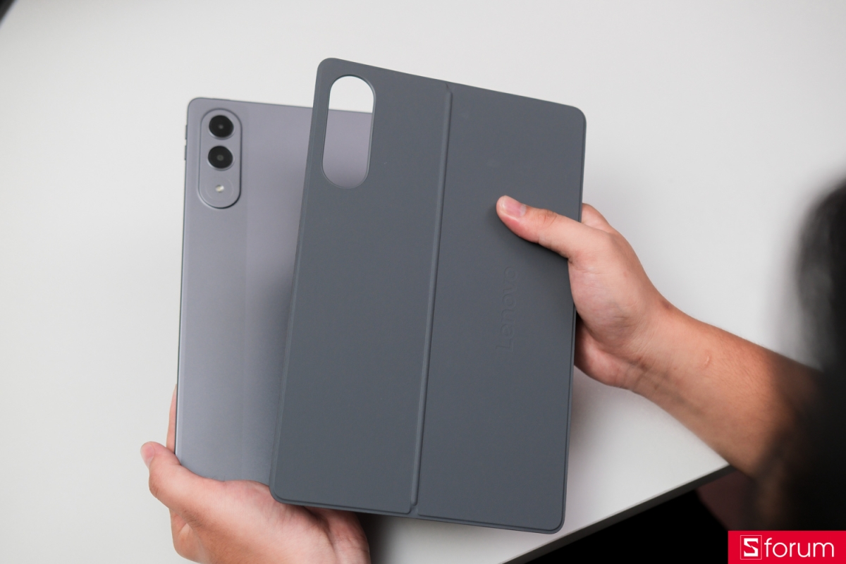 Tiếp đến là bàn phím - món phụ kiện “ăn tiền” nhất của sản phẩm này. Lenovo Keyboard Pack là bộ bàn phím “2 mảnh” với mặt trên vừa có nhiệm vụ bảo vệ lưng máy, vừa đóng vai trò như một kickstand giúp người dùng dựng máy trên mặt bàn. Mảnh còn lại chính là bàn phím với giao thức kết nối 3-pin giúp giảm thiểu tối đa độ trễ; đồng thời giúp người dùng không phải lo về việc sạc pin.