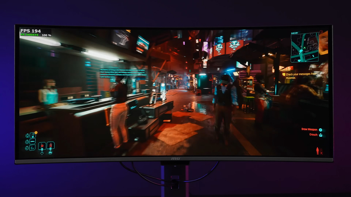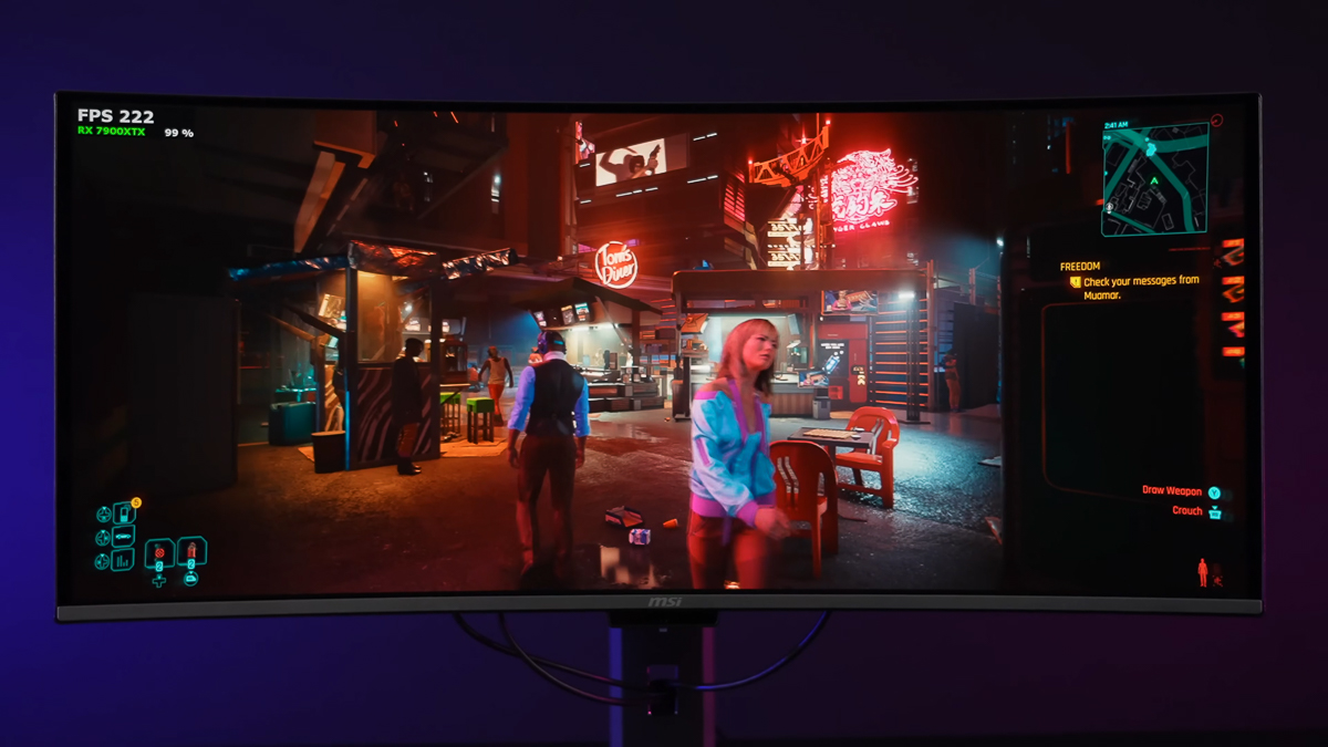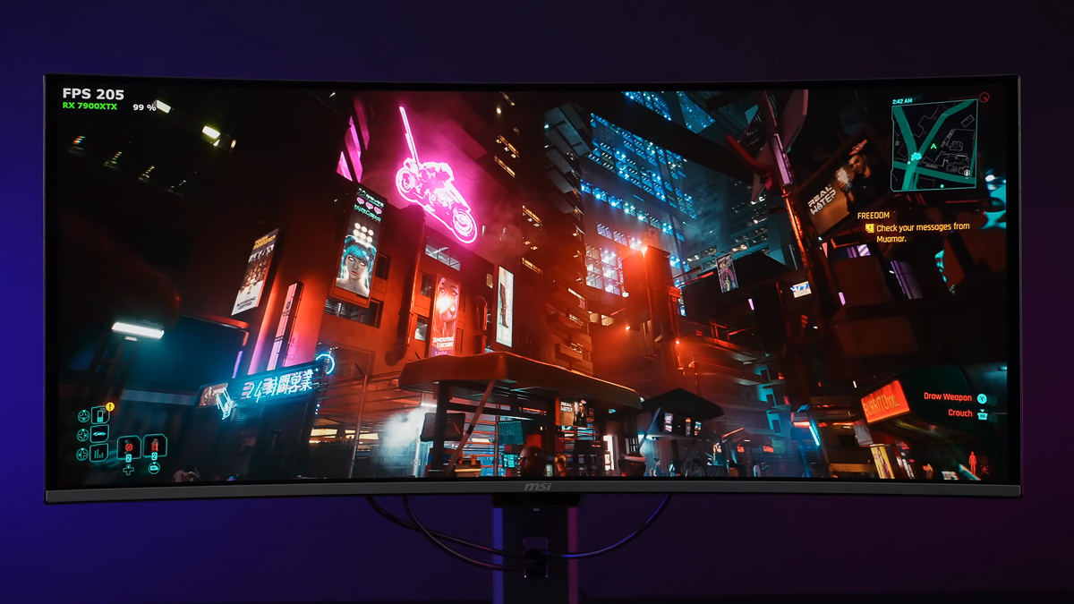 Chơi các tựa game có môi trường rộng lớn và chi tiết phức tạp như Cyberpunk 2077, các khung cảnh môi trường tối thể hiện vô cùng tốt, màu đen sâu kết hợp với các chi tiết ánh đèn rực rỡ vô cùng thích mắt và đắm chìm. Giống như chính bản thân mình đang đi dạo quanh các con đường trong thành phố vậy.