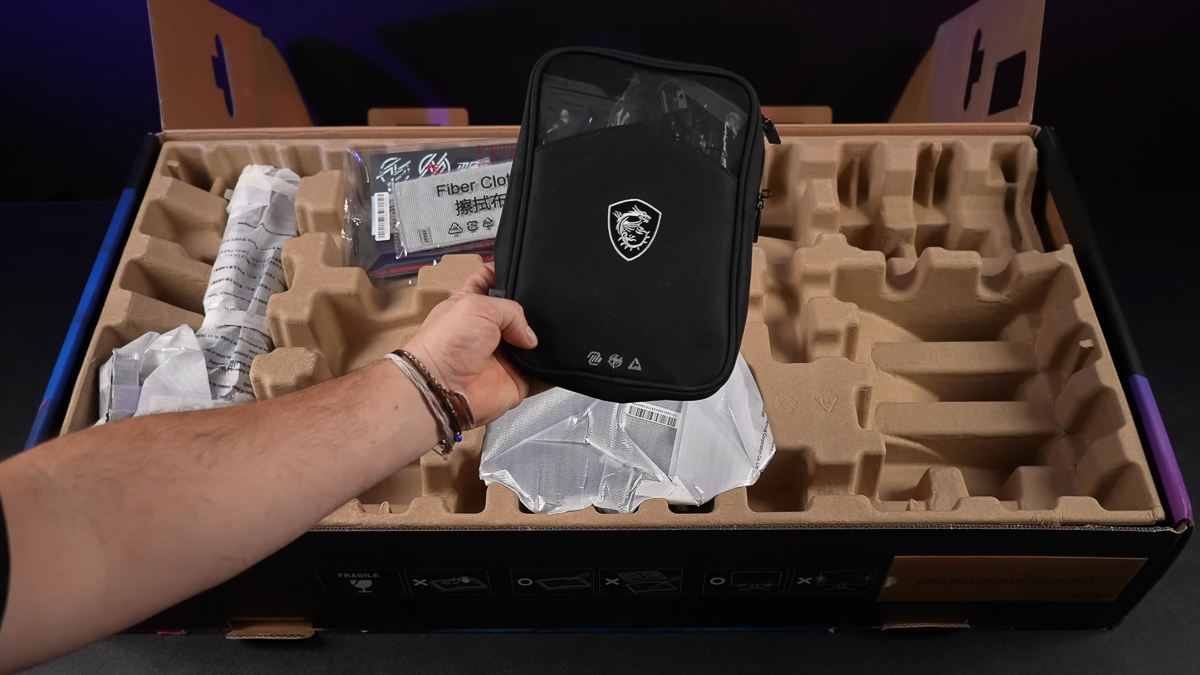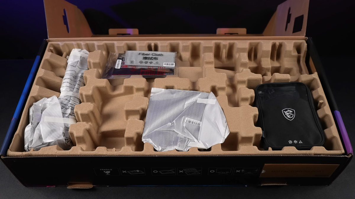 Vì có kích thước lớn lên đến 34 inch, nên phần vỏ hộp của MSI MPG 341CQR QD-OLED X36 cũng hiển nhiên rất to bự, hoành tráng và thiết kế bắt mắt. Mở hộp, chúng ta sẽ có các phụ kiện sau đi kèm với màn hình: