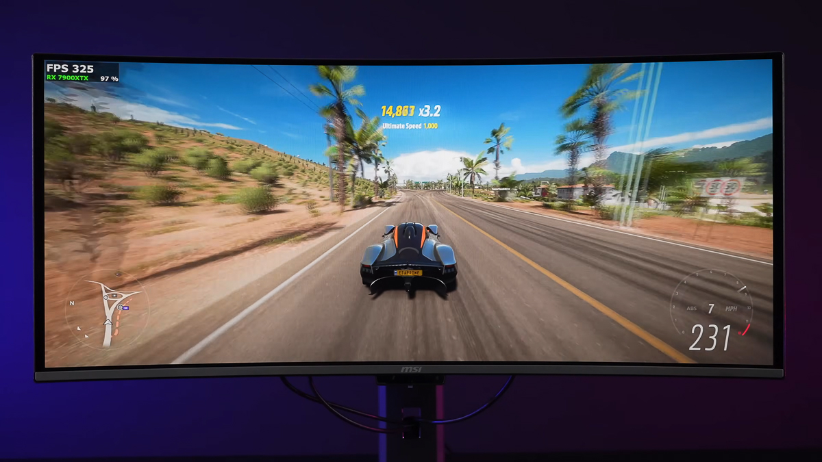 Các tựa game đua xe tốc độ, ví dụ điển hình nhất là Forza Horizon 5, chơi tựa game này chỉ còn thiếu một bộ vô lăng và bàn đạp chân ga, đạp thắng là sẽ cộng thêm độ chân thực. Bởi nhờ vào tần số quét và tốc độ phản hồi cao, nên khi tăng tốc trên các cung đường phẳng với đa dạng cảnh vật, cây cối, sa mạc xung quanh cảm giác vô cùng là giống như mình đang cầm lái trực tiếp vậy.