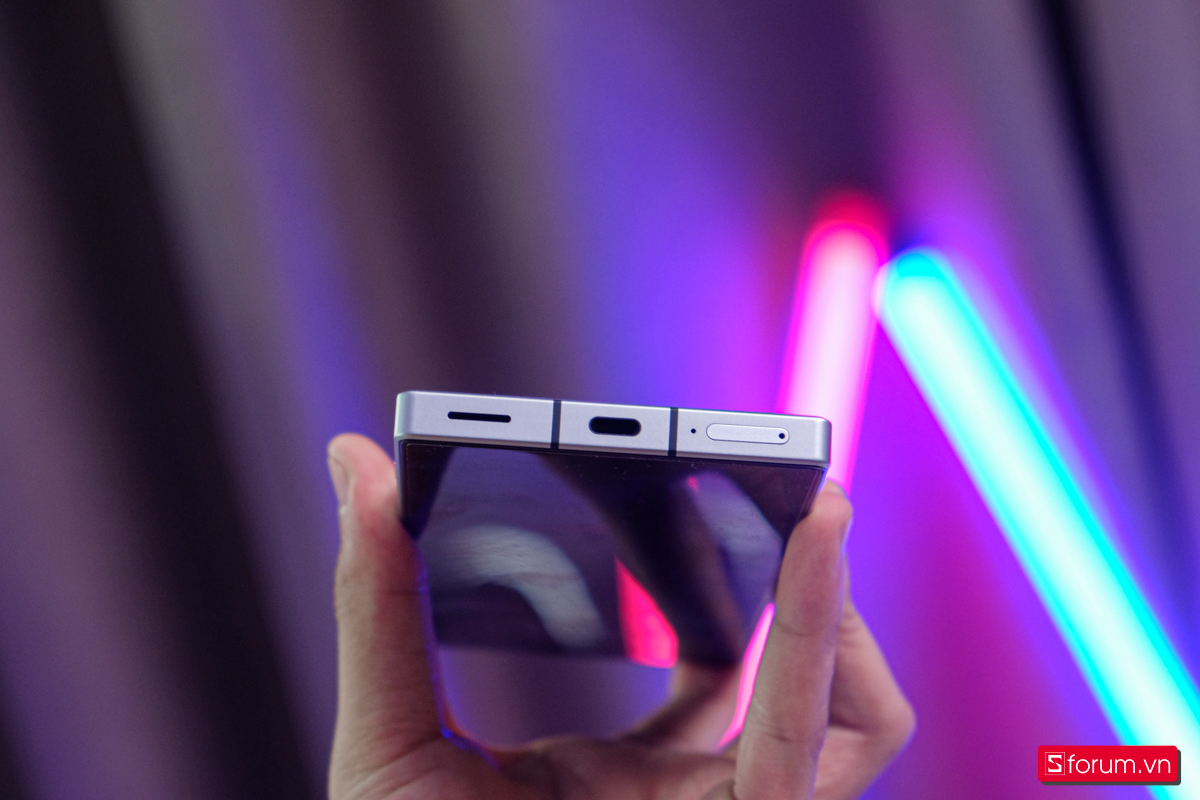 Phần khung viền của Red Magic 8S Pro hoàn thiện từ kim loại, thiết kế vô cùng vuông vắn, là nơi đặt các cổng kết nối, phím bấm vật lý, khe quạt tản nhiệt, nút trigger cảm ứng cũng như mic và dải loa...