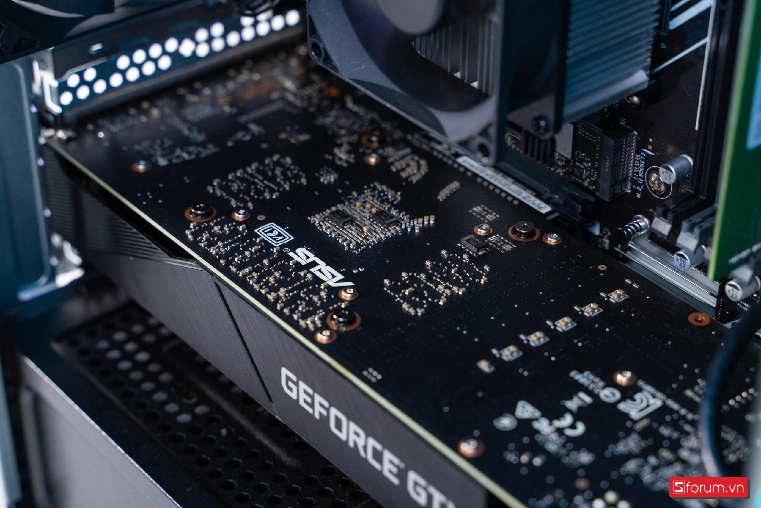 Dĩ nhiên, nếu đã thiên hướng gaming thì sẽ không thể thiếu đèn LED RGB nâng cao trải nghiệm game thủ. Ánh sáng của PC hầu hết được hắt từ dải đèn phía trước, vậy nên nếu muốn bộ PC 'cháy' hơn, bạn có thể gắn thêm quạt RGB bên trong. Các đèn LED RGB trên máy đều hỗ trợ Aura Sync giúp đồng bộ hóa màu sắc và hiệu ứng với các thiết bị của ASUS như chuột, bàn phím,...