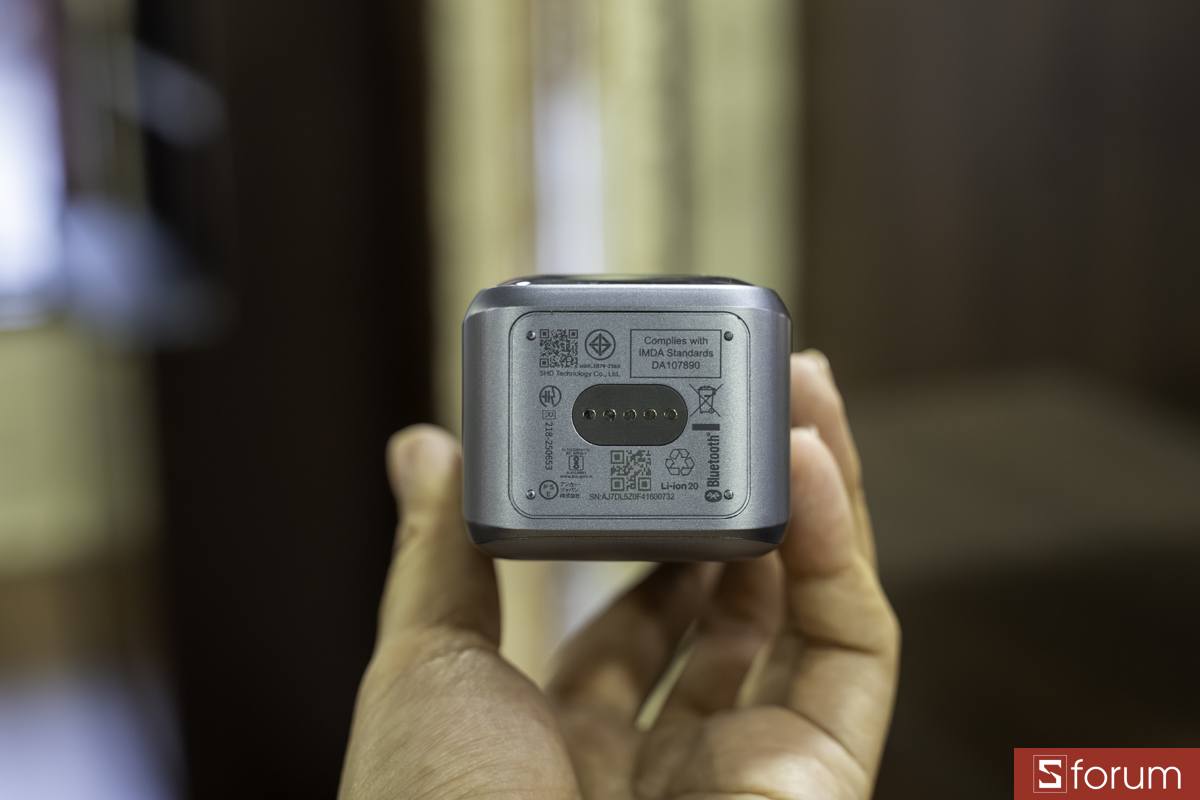 Mặt dưới là điểm tiếp xúc sạc không dây POGO nổi tiếng của Anker, Tuy nhiên, để dùng được tính năng "Drop and Go" (thả là sạc) cực tiện này, bạn sẽ phải mua riêng đế sạc chứ không được tặng kèm. Tin vui cho các "fan cứng" Anker là model A110B mới này vẫn hoàn toàn tương thích với trạm sạc 100W của thế hệ cũ. Nếu bạn đang dùng dòng Prime cũ và đã có đế sạc rồi thì chỉ việc tận dụng lại, đỡ tốn thêm một khoản kha khá.