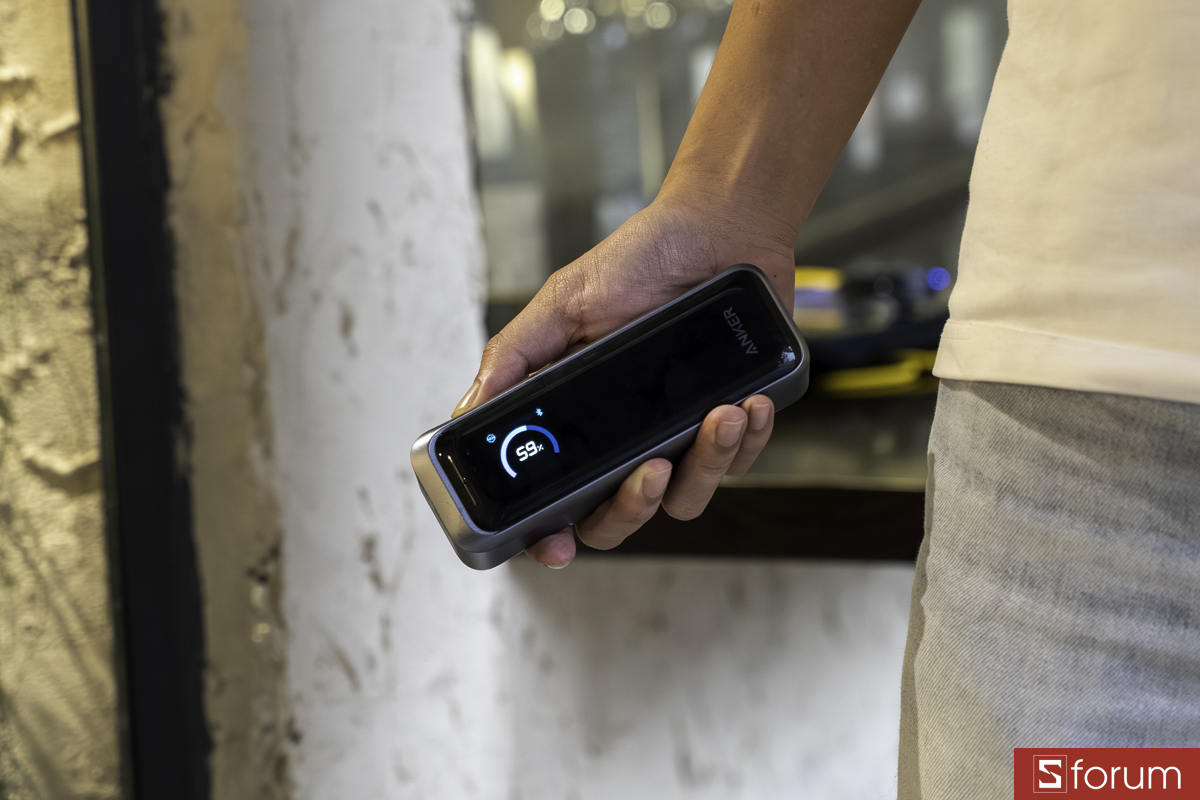 Cầm Anker Prime 20,000mAh 220W A110B trên tay, cảm giác đầu tiên là sự cao cấp và chắc chắn. Với kích thước 14.7 x 4.3 x 5.0 cm và trọng lượng gần 500g, nó không sinh ra để "lẩn khuất" trong cặp xách của bạn, mà xứng đáng nằm trang trọng trên bàn làm việc của bạn.