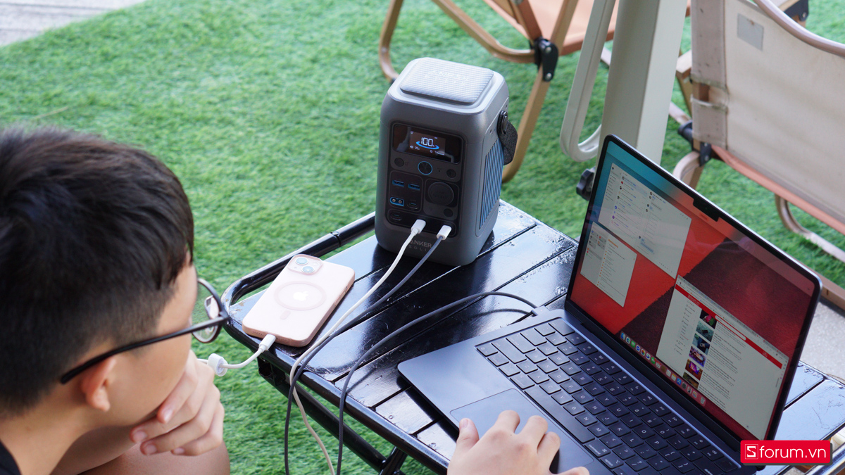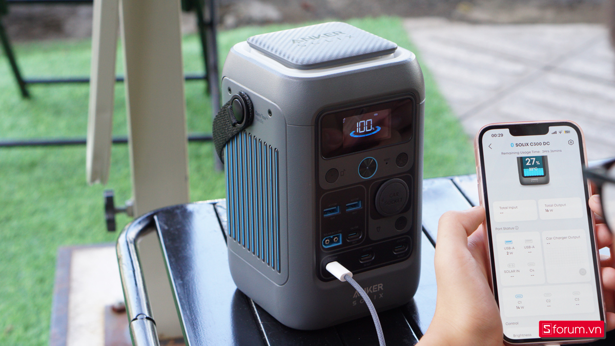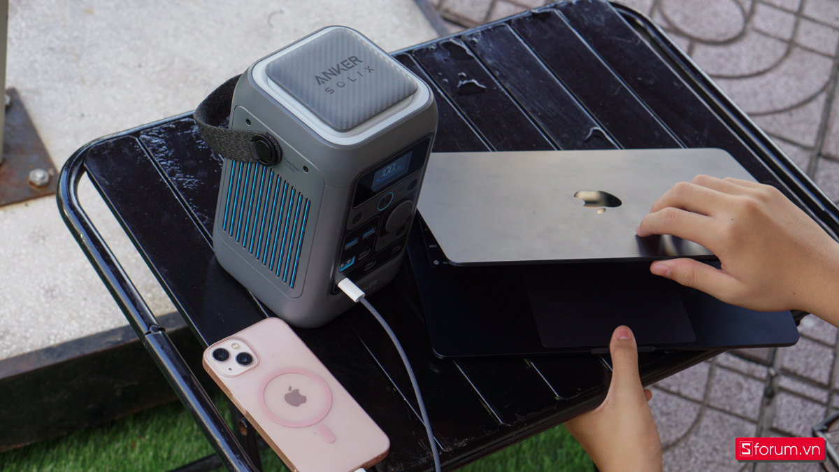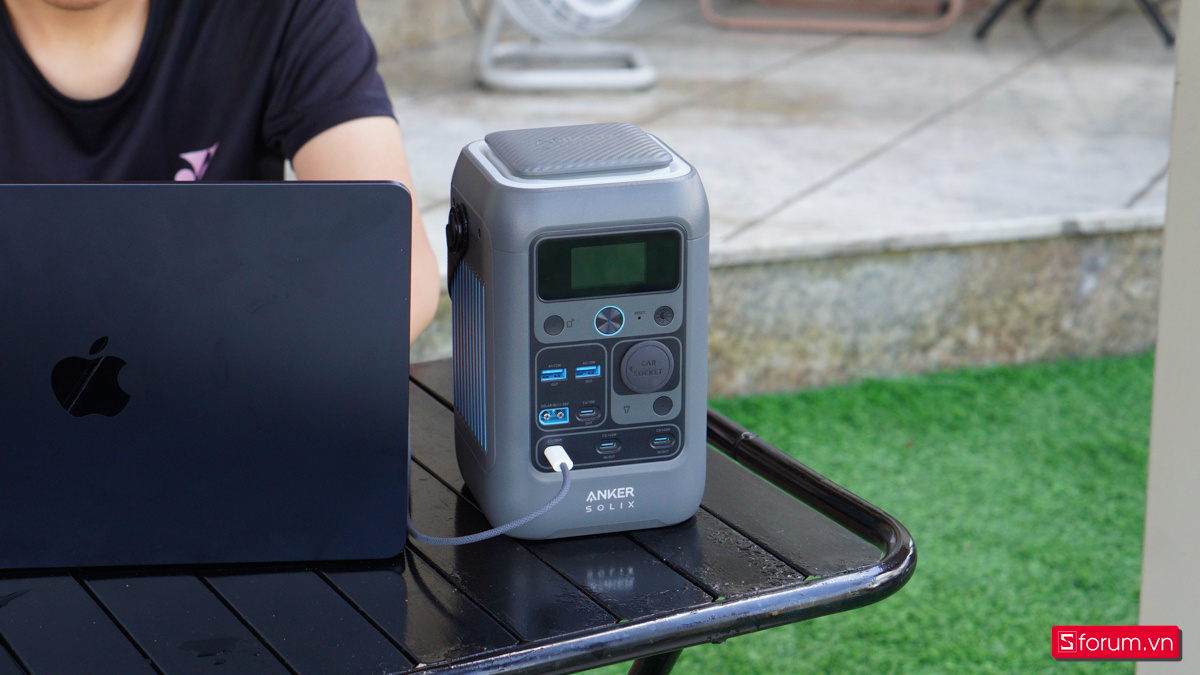 Thực tế khi trên tay Anker Solix C300 DC, với cổng USB-C công suất 140W, có thể sạc 100% một chiếc Macbook Air M4 trong vòng chưa đầy 2 tiếng. Các cổng đầu ra còn lại cũng có công suất cao nhất là 140W, hỗ trợ cho nhiều thiết bị di động khác nhau.