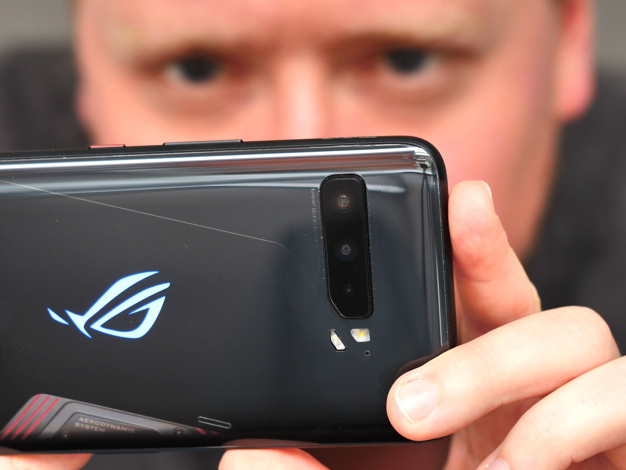 Về camera, năm nay ROG Phone 3 được nâng cấp lên cụm 3 camera chính ở mặt lưng, bao gồm một cảm biến chính 64MP Sony IMX686, một cảm biến 13MP với ống kính ultrawide, một cảm biến 5MP với ống kính macro. Ngoài ra máy cũng có một camera selfie 24MP ở mặt trước.
