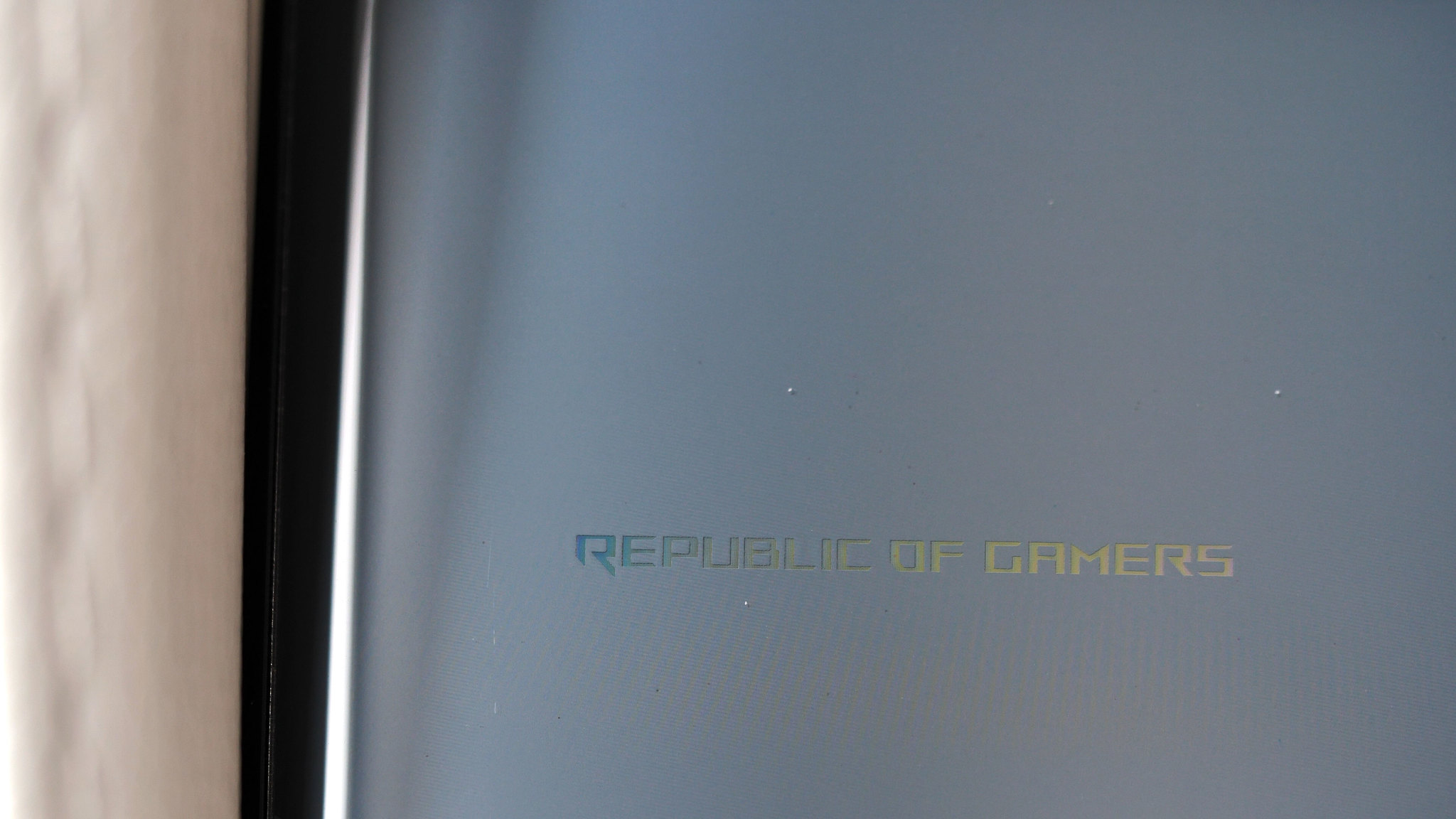 Mặt lưng này của máy được trang trí với các họa tiết mới lạ khiến người dùng liên tưởng tới yếu tố gaming. Đây cũng là vị trí đặt logo 'ROG' ở chính giữa mặt lưng. Logo này đồng thời cũng kiêm luôn dải đèn LED RGB có thể tùy chỉnh màu sắc trong cài đặt của máy tùy theo sở thích của người dùng hoặc tùy theo nội dung đang được hiển thị và phát trên màn hình.