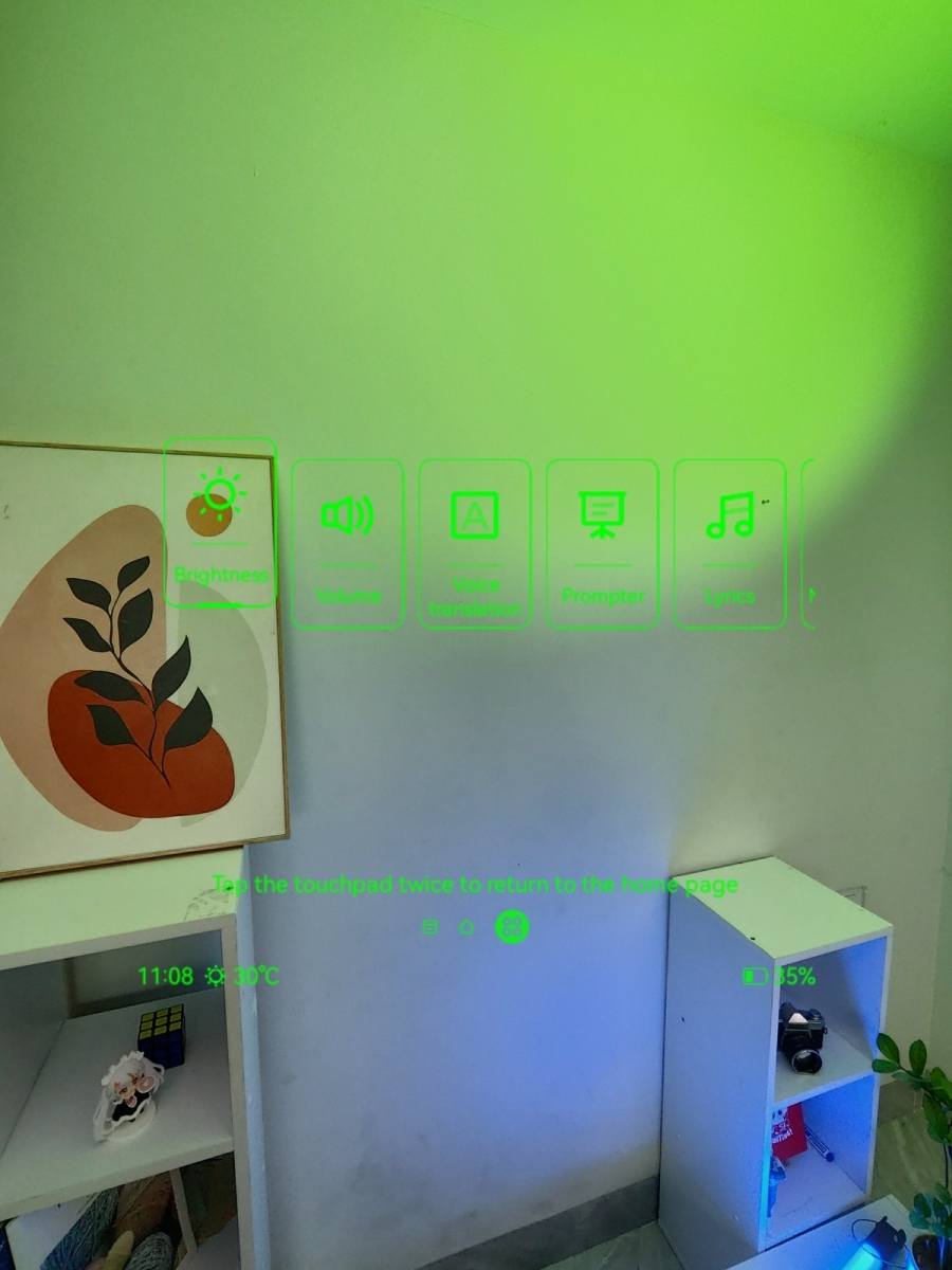 Bạn sẽ thấy màn hình của kính Rokid Glasses như thế này khi đeo lên, mọi thứ dễ nhìn, có thể thao tác bằng nút bấm và cảm ứng trên kính hoặc ra lệnh cho AI thực hiện.