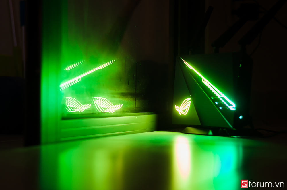 Dàn LED của ROG Rapture GT-AC2900 là điểm nhấn quan trọng đối với phiên bản router này của Asus. LED có nhiều chế độ sáng: chế độ đơn sắc, chế độ màu chuyển gradient (2 màu), chế độ 5 màu và chúng sáng theo nhiều nhịp điệu khác nhau. Bạn có thể điều chỉnh chế độ sáng mà mình thích bằng nút điều chỉnh ở mặt bên router.