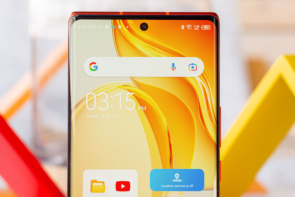 Ở mặt trước, Phantom X2 Pro có màn hình kích thước 6.8 inch khá lớn, sử dụng tấm nền AMOLED cao cấp với độ phân giải FHD+ cùng tần số quét cao 120Hz, độ sáng 500 nits. Màn hình này sử dụng thiết kế 'nốt ruồi' với camera selfie 32MP đặt ở chính giữa. Ngoài ra đây cũng là màn hình cong cạnh bên, tích hợp cảm biến vân tay quang học cho thao tác sử dụng thuận tiện.