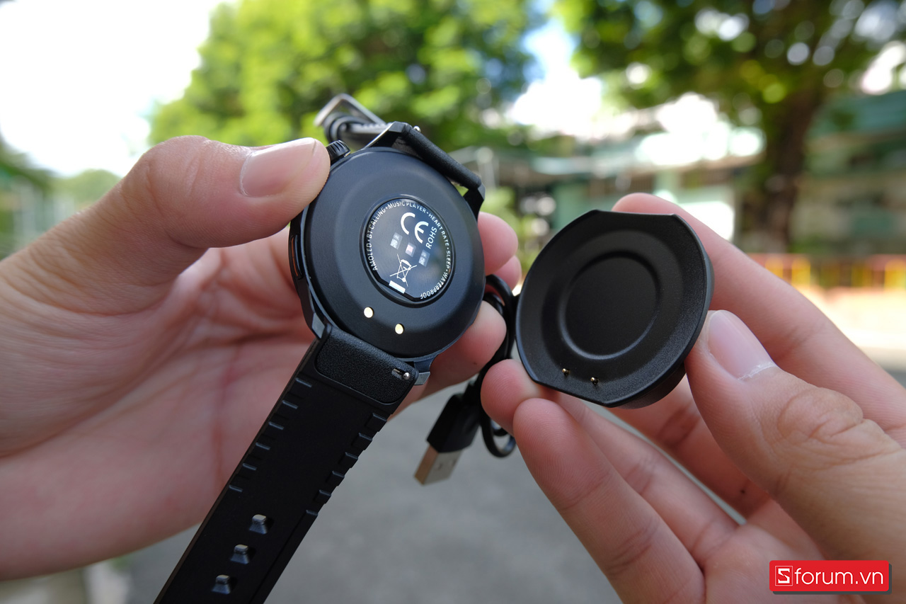 Phần mặt sau của đồng hồ sẽ là nơi đặt cụm cảm biến cũng như chân sạc nam châm. Phần cảm biến này sẽ nhô cao lên một chút, tuy nhiên nó không quá cao như một số sản phẩm khác, sẽ không gây khó chịu khi đeo trong thời gian dài.