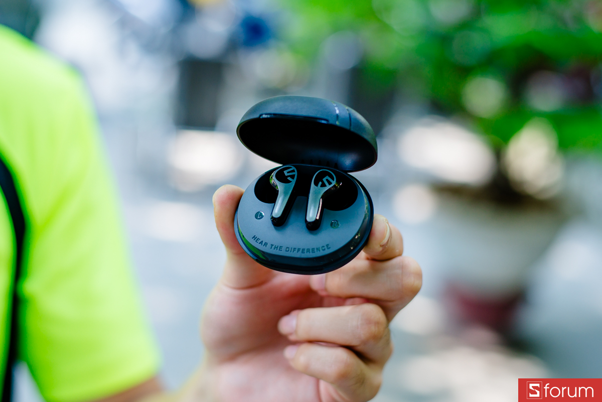 Nắp hộp mở đóng bằng bản lề khá êm, bên trong có nam châm giữ tai nghe chắc chắn không lo rơi ra khi mang theo. Trọng lượng tổng thể rất nhẹ chỉ 43.6g, anh em có thể bỏ túi quần mang đi cafe hay đi tập gym mà không hề thấy vướng víu.
