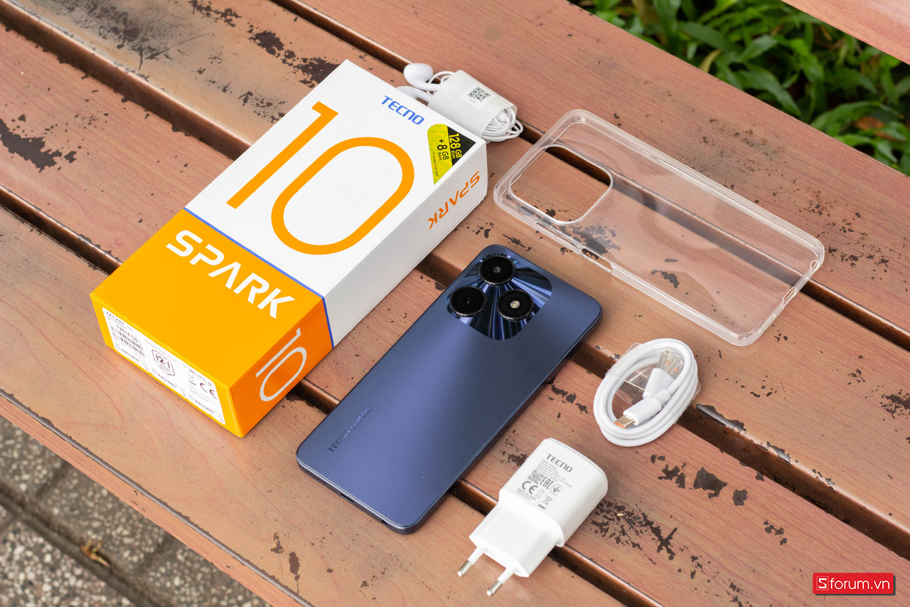 Ngay từ khi mở hộp thì mình khá bất ngờ vì sự chỉn chu của hãng khi trong hộp có đầy đủ các phụ kiện không thiếu một món nào. Điều đặc biệt là TECNO vẫn tặng kèm tai nghe 3.5m, điều mà chúng ta không còn thấy nhiều ở hiện tại nữa.