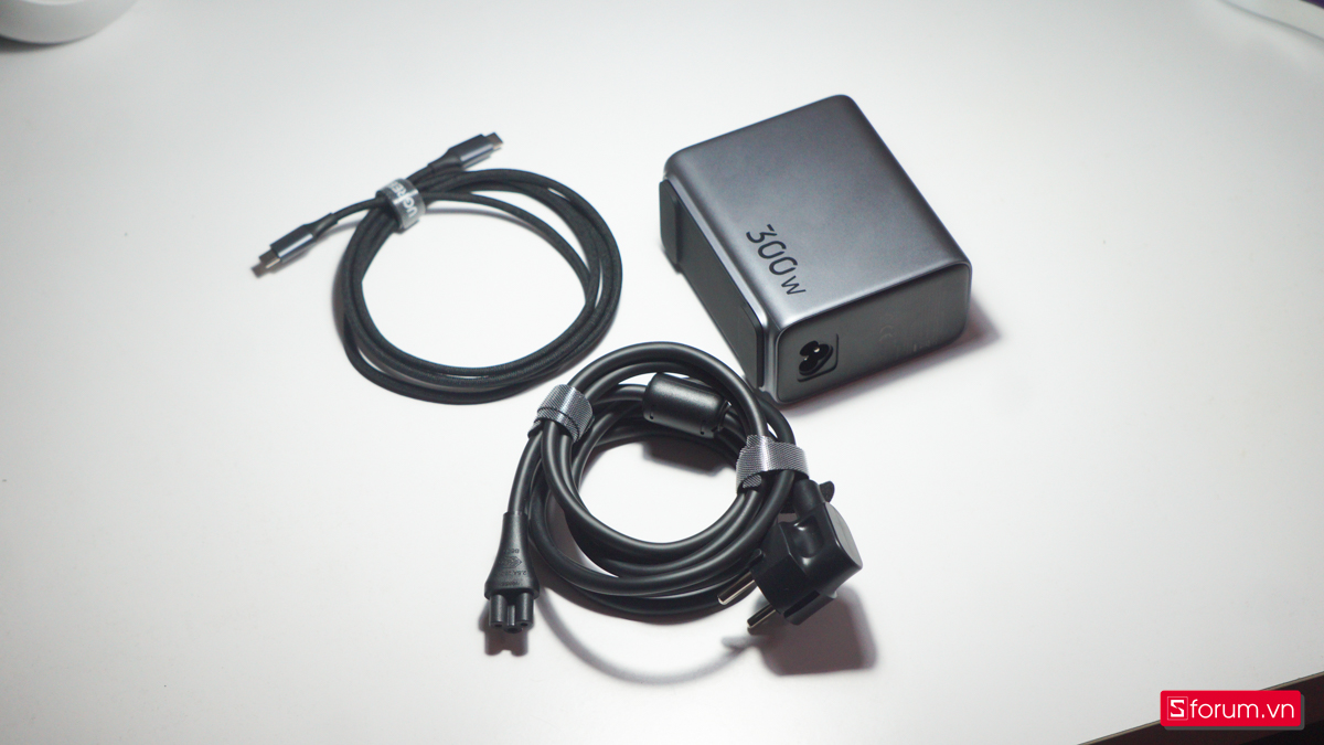 Bên trong ngoài nhân vật chính của chúng ta, hãng cũng trang bị đầy đủ những phụ kiện cần thiết như dây nguồn, giấy hướng dẫn sử dụng cũng như một sợi cáp USB-C bọc dù hỗ trợ công suất lên đến 240W cực kì chất lượng.