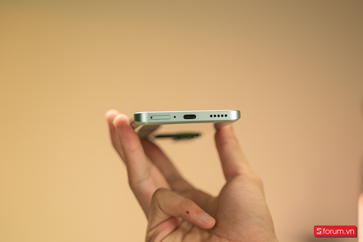 Cạnh dưới của thiết bị là nơi đặt cổng sạc USB - C, khe SIM và loa ngoài.