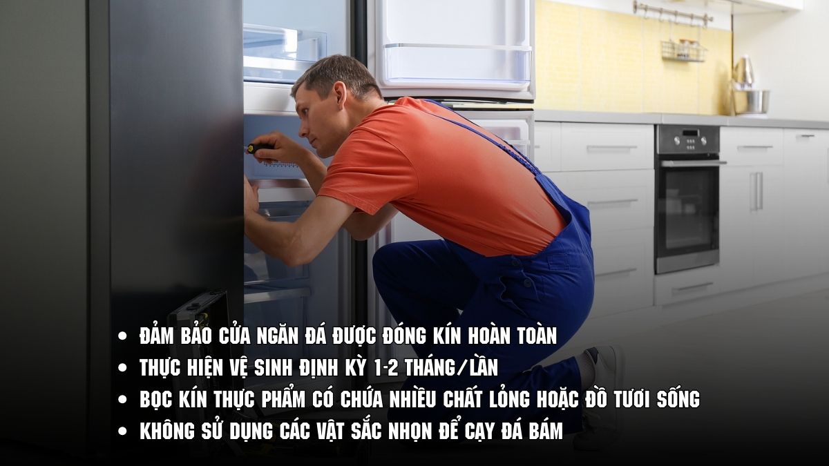 Để hạn chế tối đa sự cố ngăn đá tủ lạnh Samsung bị chảy nước, người dùng cần hình thành những thói quen sử dụng khoa học và thực hiện bảo trì định kỳ cho thiết bị. Việc phòng bệnh sẽ giúp bạn tiết kiệm chi phí sửa chữa và đảm bảo an toàn thực phẩm cho gia đình.
