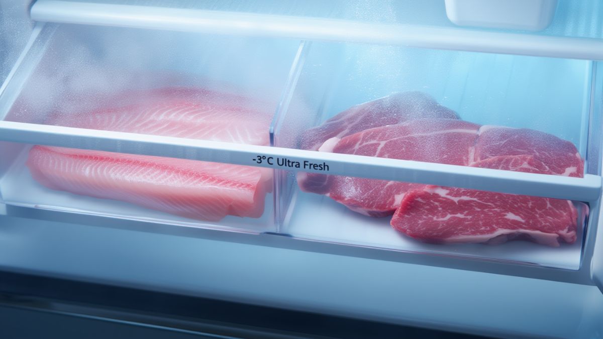 Ngăn Ultra Fresh là một cải tiến đột phá giúp bảo quản thịt cá tươi ngon ở nhiệt độ -3 độ C mà không làm đông đá hoàn toàn, giúp người dùng tiết kiệm thời gian rã đông. Độ ẩm trong ngăn chứa rau quả luôn được kiểm soát ở mức tối ưu nhằm ngăn chặn sự mất nước của thực phẩm tự nhiên.