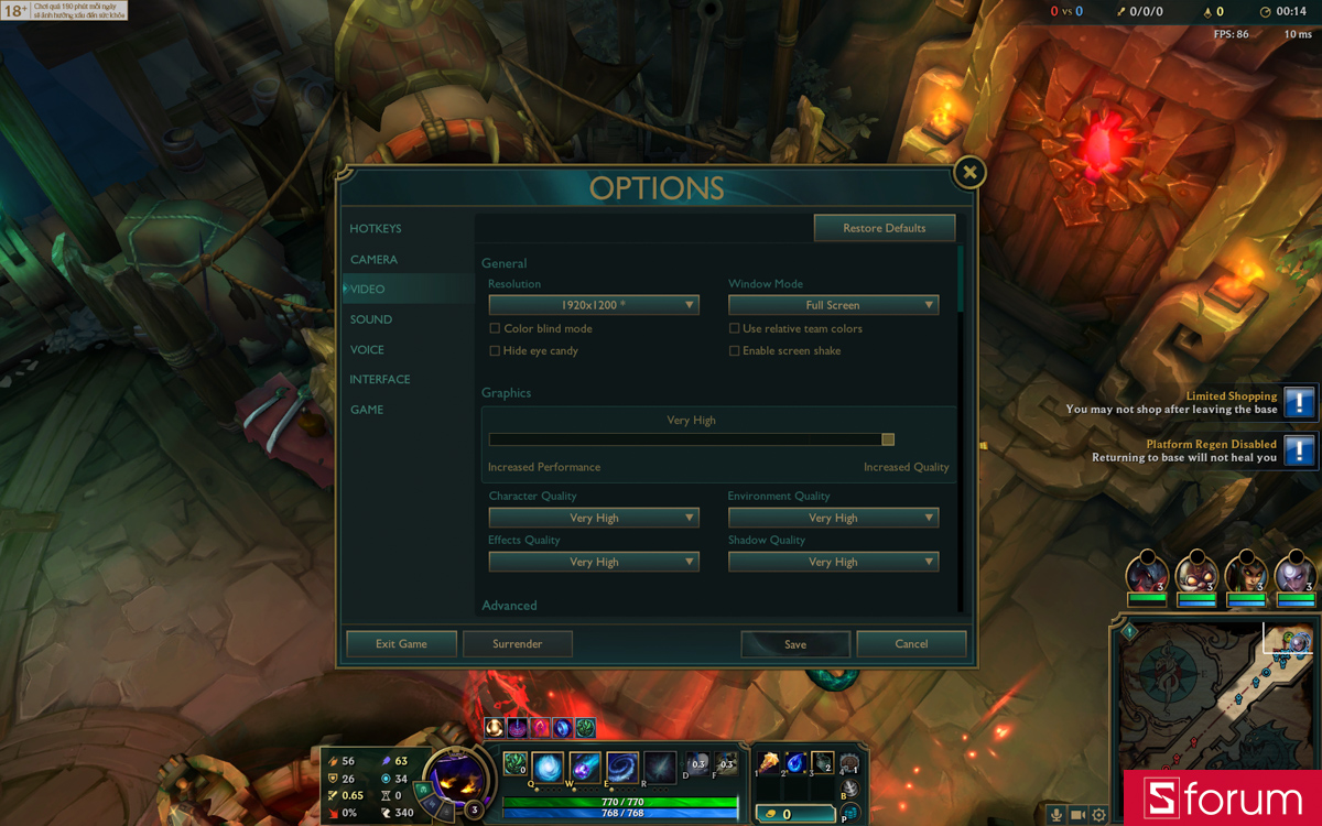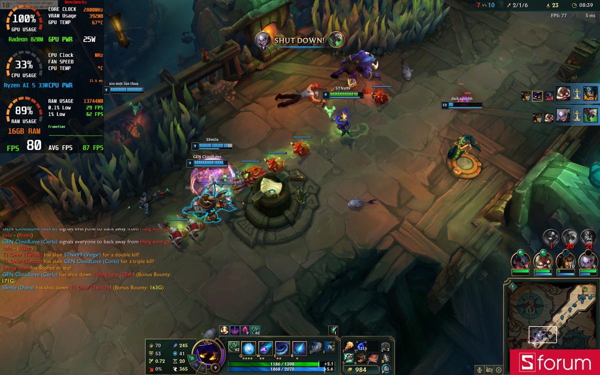 Khi mình mang ASUS VivoBook S14 M3407KA ra chơi thử vài game quen thuộc. Mình test Liên Minh Huyền Thoại, để max setting, độ phân giải 1920 × 1200 xem sao. Kết quả là máy vẫn chạy khá mượt, trung bình khoảng 86 FPS.