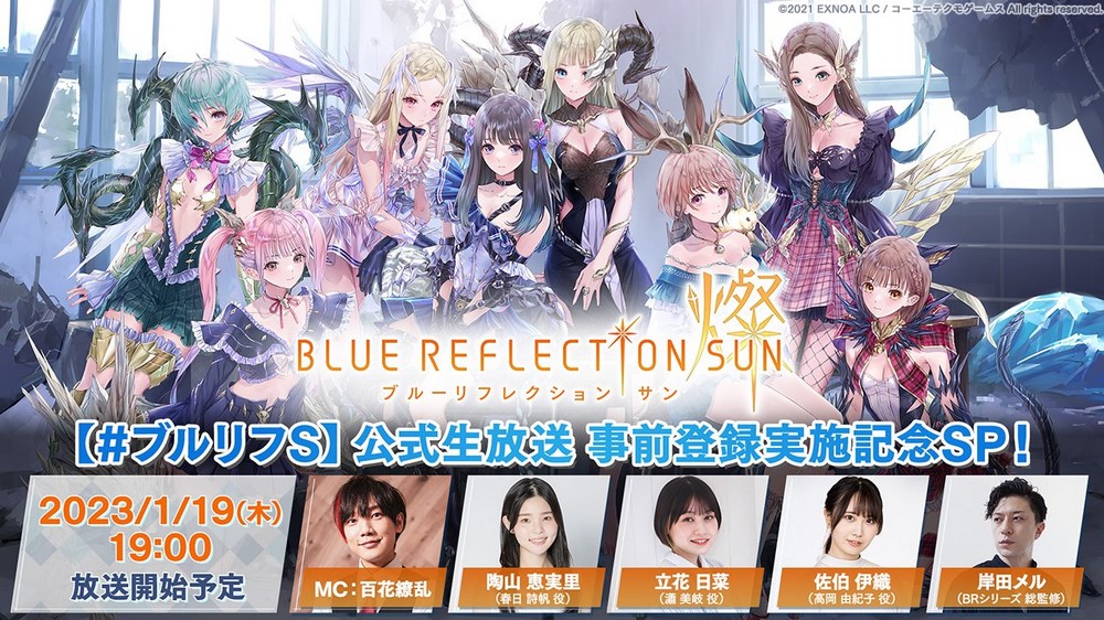 Vào khoảng 10h (GMT) ngày 19 tháng 1 năm 2023, sẽ có một buổi livestream với sự góp mặt của dàn diễn viên chính bao gồm: Emiri Suyama vai Shiho Kasuga, Hina Tachibana vai Meichi Shao và Iori Saeki vai Yukiko Takaoka. Mei Kishida, tổng giám sát viên/nhà thiết kế nhân vật cho series Blue Reflection, sẽ trình bày kết quả của đợt thử nghiệm close beta đã tiến hành trước đó vào tháng 12 năm 2022, cùng với các kế hoạch phát hành trò chơi trong tương lai. Tuy nhiên, hiện tại vẫn chưa có bất kỳ thông tin nào về việc phát hành Blue Reflection Sun trên toàn cầu.
