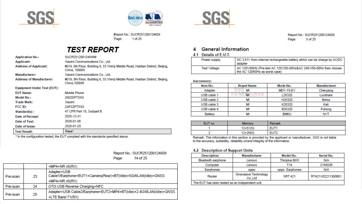 Với số model “2602DPT53G”, điện thoại thông minh Xiaomi 17T đã xuất hiện trên cơ sở dữ liệu FCC và đã đạt được chứng nhận với mã FCC ID là “2AFZZPT53G”. Mặc dù tên gọi chính xác của smartphone này không được đề cập trong danh sách, nhưng các chứng nhận trước đó xác nhận rằng số hiệu model này thuộc về thiết bị Xiaomi 17T sắp ra mắt.