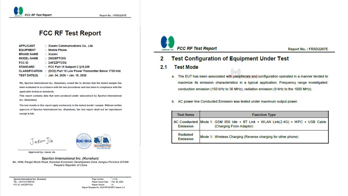 Ngoài Xiaomi 17T, phiên bản Pro của nó cũng được liệt kê trong chứng nhận FCC với mã FCC ID “2AFZZPTC0G” và số hiệu model “2602EPTC0G”.