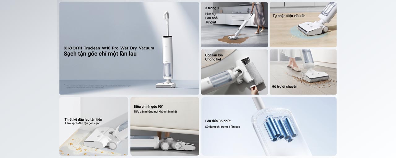 Dòng sản phẩm ra mắt với hai phiên bản: Xiaomi Truclean W10 Ultra Wet Dry Vacuum và Xiaomi Truclean W10 Pro Wet Dry Vacuum với ba chức năng làm sạch chính bao gồm: hút bụi, lau nhà, tự giặt. Nhờ hệ thống phát hiện bụi bẩn thông minh, sản phẩm sở hữu tính năng cho phép thiết bị điều chỉnh công suất làm sạch tự động dựa vào lượng bụi đo được.
