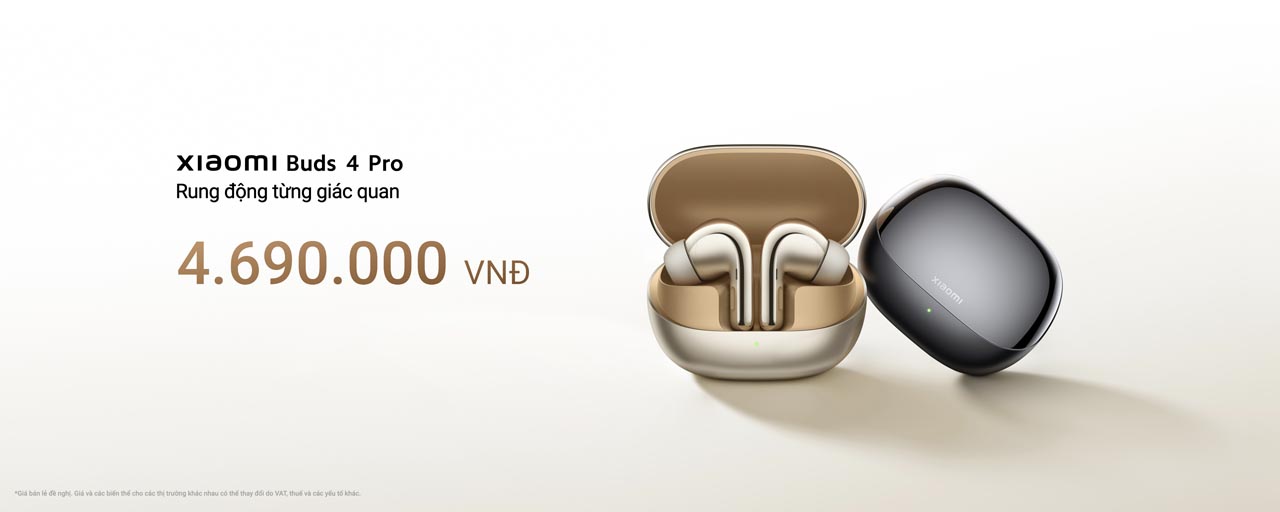 Từ ngày 10.03 – 19.03, Xiaomi Buds 4 Pro chính thức mở bán với giá 4,690,000, độc quyền tại CellphoneS kèm quà tặng hấp dẫn trị giá 1,090,000.