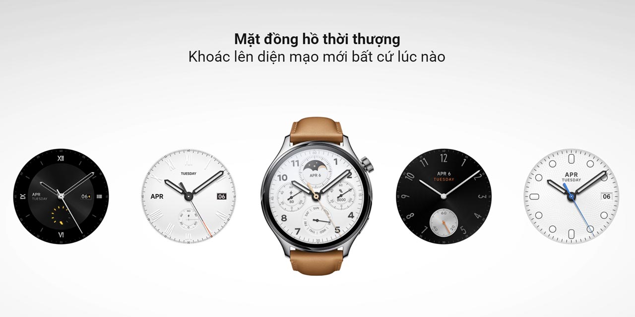 Xiaomi Watch S1 Pro sở hữu hai biến thể màu sắc riêng biệt, một phiên bản với thân đồng hồ màu bạc kết hợp cùng dây đeo bằng da màu nâu và một phiên bản với thân đồng hồ màu đen đi cùng dây cao su cao cấp đồng màu. Cả hai phiên bản đều có thể tùy chỉnh với hơn 100 mặt đồng hồ sắc sảo, phù hợp với mọi sở thích và phong cách của người dùng. Ngoài ra, Xiaomi Watch S1 Pro còn sử dụng loại chốt dây phổ thông, dễ dàng thay thế, đảm bảo tính linh hoạt trong quá trình sử dụng.