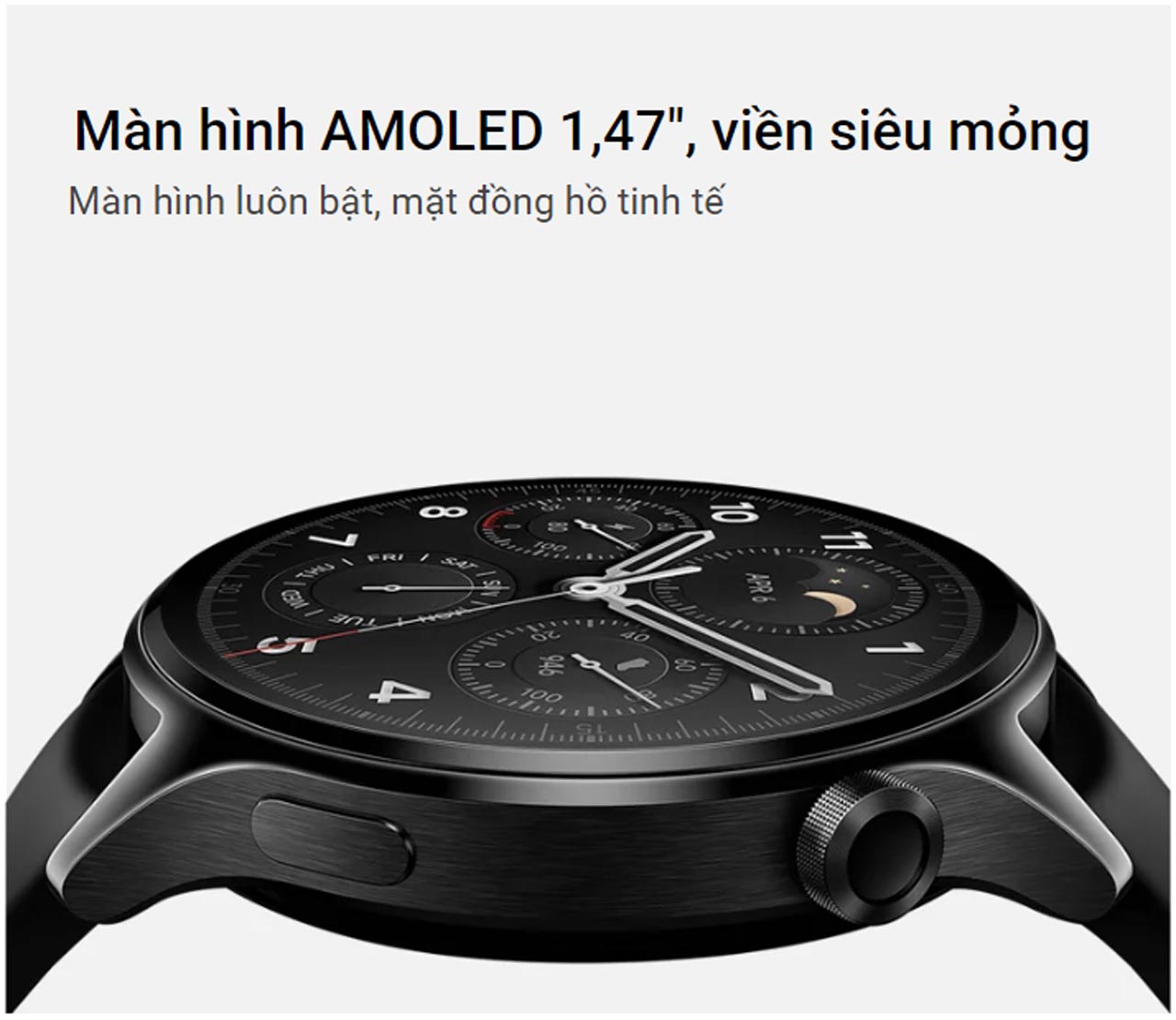 Xiaomi Watch S1 Pro được chế tác tỉ mỉ bằng các vật liệu cao cấp có độ bền và thẩm mỹ cao, chiếc đồng hồ thông minh này sở hữu màn hình AMOLED 1.47 inch đầy ấn tượng và mặt kính tinh thể sapphire chống trầy xước, đảm bảo khả năng hoạt động bền bỉ.