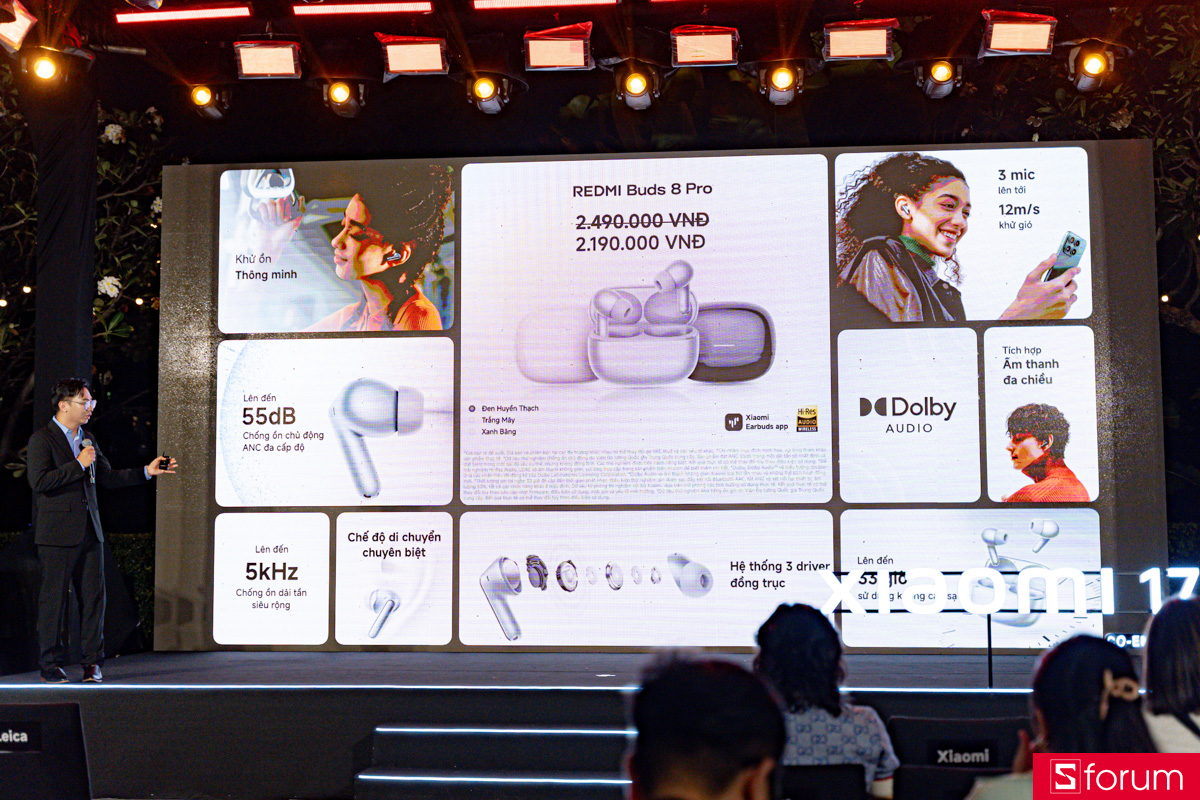 - REDMI Buds 8 Pro (gồm ba phiên bản màu Trắng mây, Đen huyền thạch và Xanh băng) có cùng giá bán chính thức 2,490,000 đồng