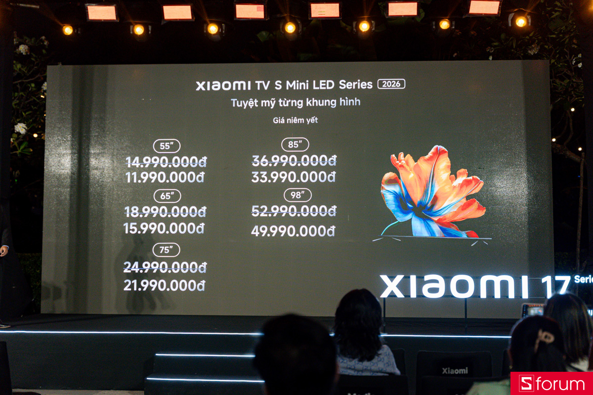 - Xiaomi TV S Mini LED 2026 Series với 3 phiên bản kích thước 55 inch, 65 inch và 75 inch, có giá bán chính thức lần lượt là 14,990,000 đồng, 18,990,000 đồng và 24,990,000 đồng