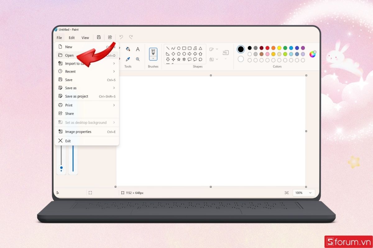 Bạn có thể mở ứng dụng Paint mặc định trên hệ điều hành Windows, nhấp vào nút File > Open để chọn ảnh cần xóa Watermark Gemini