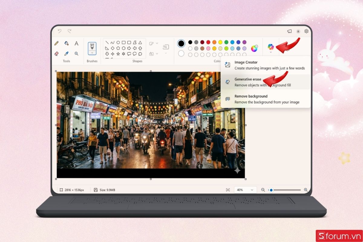 Hầu hết các phần mềm chỉnh sửa đồ họa hiện đại đều đã được tích hợp tính năng Generative Eraser (Xóa vật thể bằng AI). Tính năng này hoạt động cực kỳ mượt mà, đặc biệt là với các hình ảnh do AI tạo ra thường có bối cảnh viền khá đơn giản.