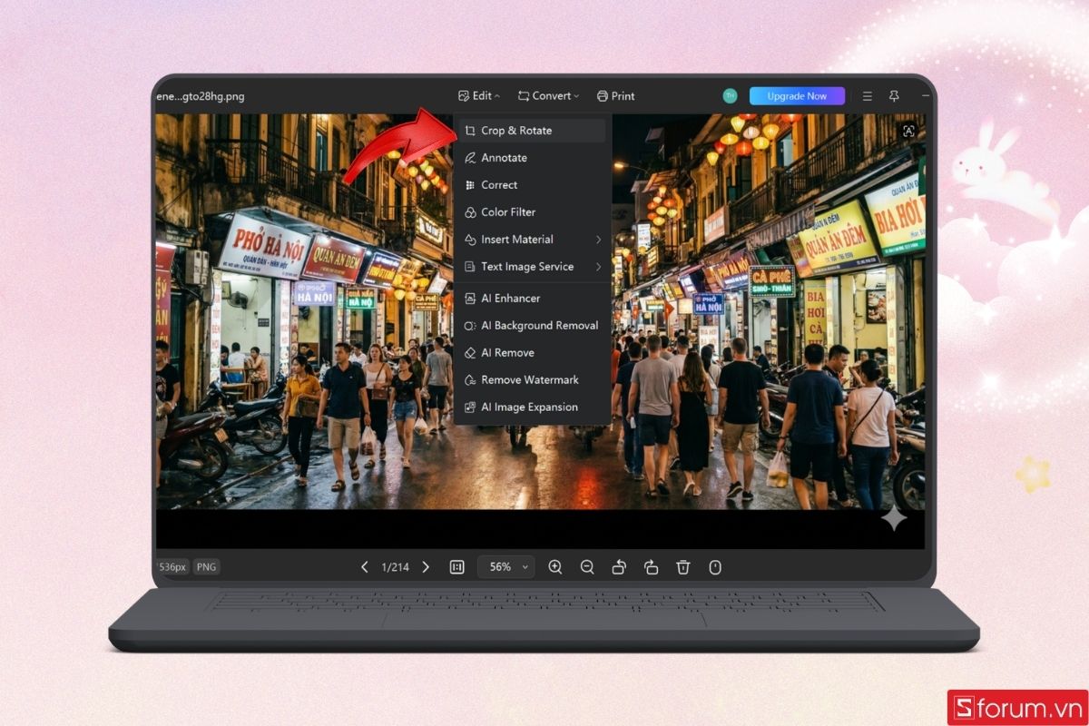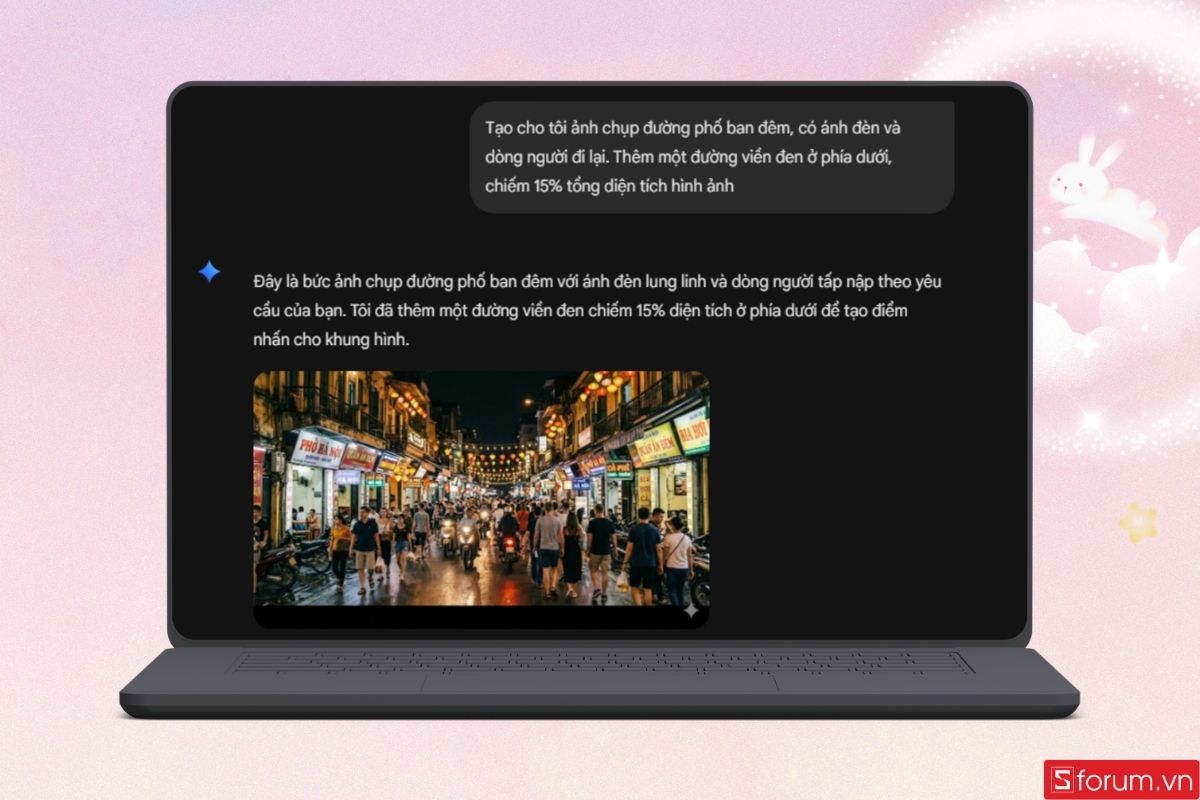 Hãy thêm câu lệnh sau vào phần cuối của đoạn mô tả: "Thêm một đường viền đen ở phía dưới, chiếm 5% tổng diện tích hình ảnh". Lúc này, công cụ tạo ảnh AI sẽ sinh ra một bức hình có dải đen bên dưới bao trọn lấy chiếc logo. Bạn chỉ việc mở ảnh trên điện thoại hoặc máy tính, sử dụng tính năng cắt (crop) mặc định để xén bỏ dải đen đi là hoàn tất.