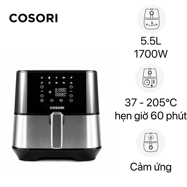 11 chế độ thiết lập sẵn Nhắc nhở "lắc/đảo" Chức năng tự động ngắt khi rút giỏ chiên ra Chức năng bảo vệ chống cháy Tay cầm nồi chiên chống nóng kèm nút an toàn |