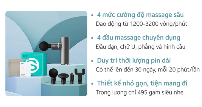 SKG Mini F3 Lite là một lựa chọn tuyệt vời cho những ai đang tìm kiếm một thiết bị massage cầm tay nhỏ gọn, tiện lợi và hiệu quả. Dưới đây là một số lý do tại sao bạn nên mua súng massage này: