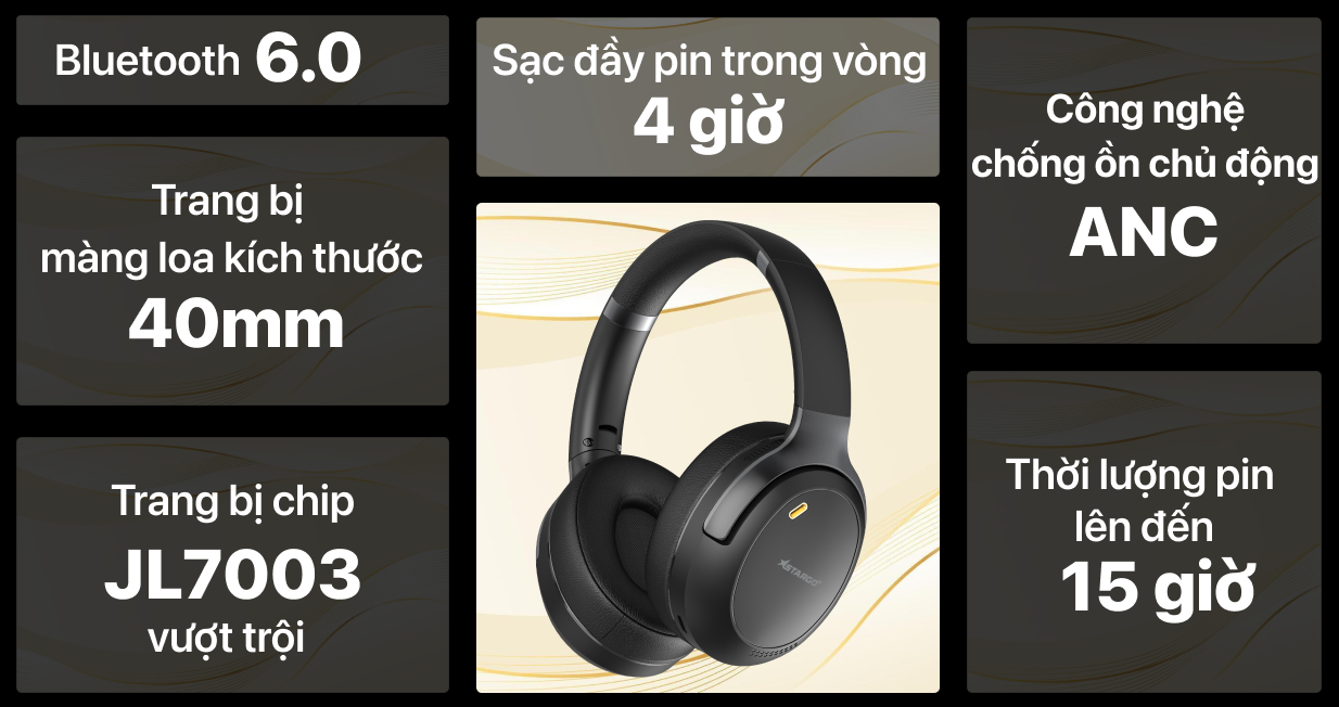 Để tạo ra một chất âm đủ rộng, đủ dày, Stargo trang bị cho C100 Pro ANC driver 40mm. Chính driver lớn này giúp âm trầm có lực, âm trung tròn đầy và âm cao có độ sáng rõ ràng mà không bị chói. Song hành với đó là con chipset JL7003, mang lại dải âm cân bằng, độ chi tiết cao và độ méo tiếng thấp.