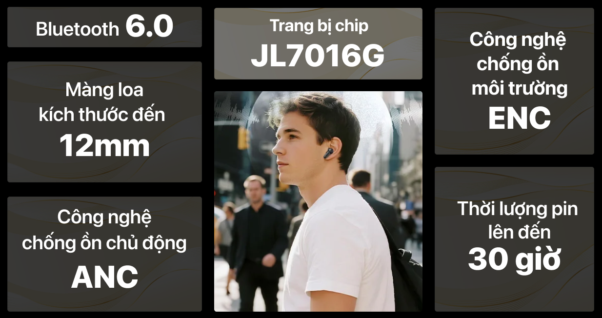 Tiên tiến với ANC lai và ENC, chống ồn sâu đến -45dB
